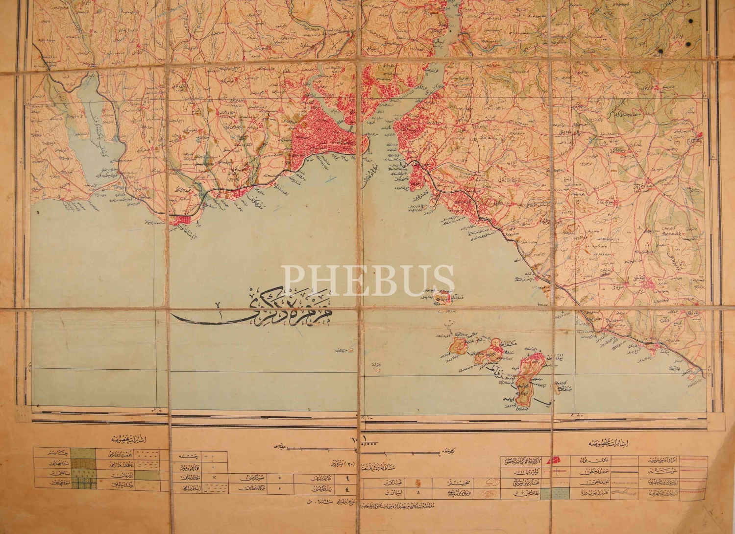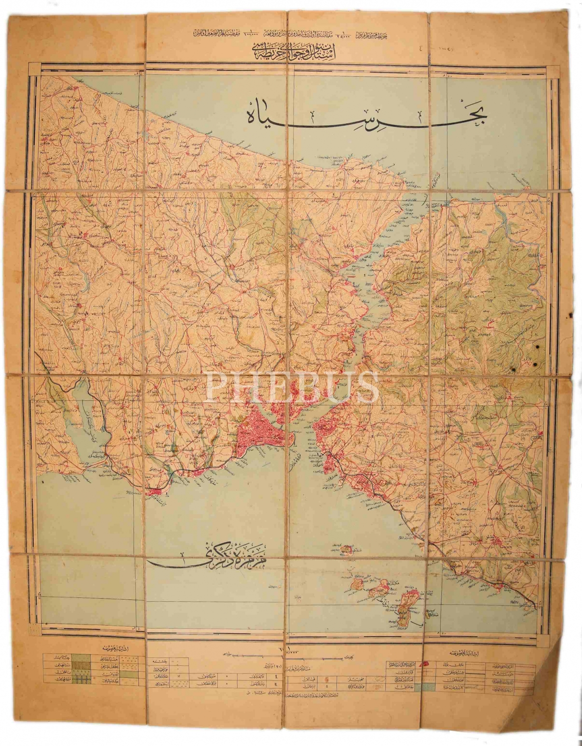 Osmanlıca İstanbul ve Civarı Haritası, Müdafaa-i Milliye Vekaleti Harita Dairesi İstanbul Matbaası'nda Basılmış, 1340 tarihli, 55x75 cm