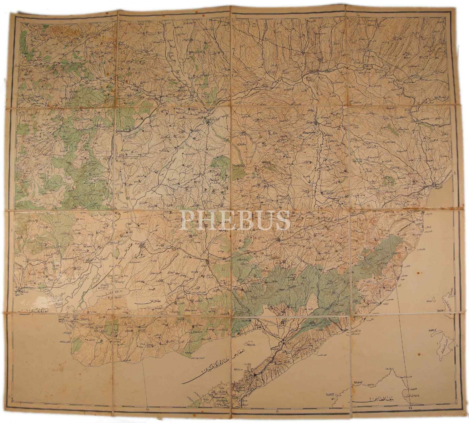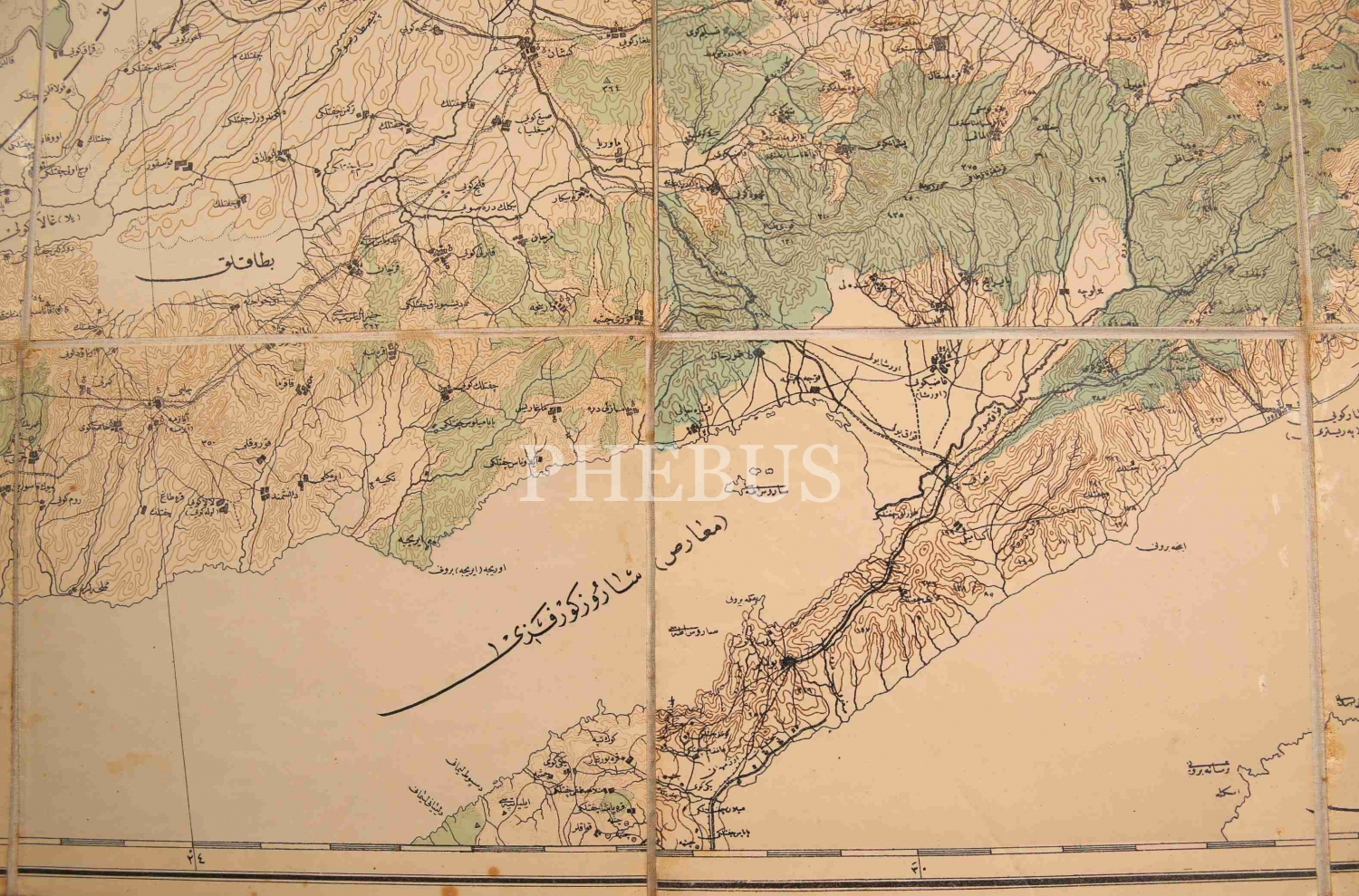 Osmanlıca Tekirdağ Haritası, Mehmed Şükrü [Sagun] Paşa'nın Terekesinden, 70x65 cm