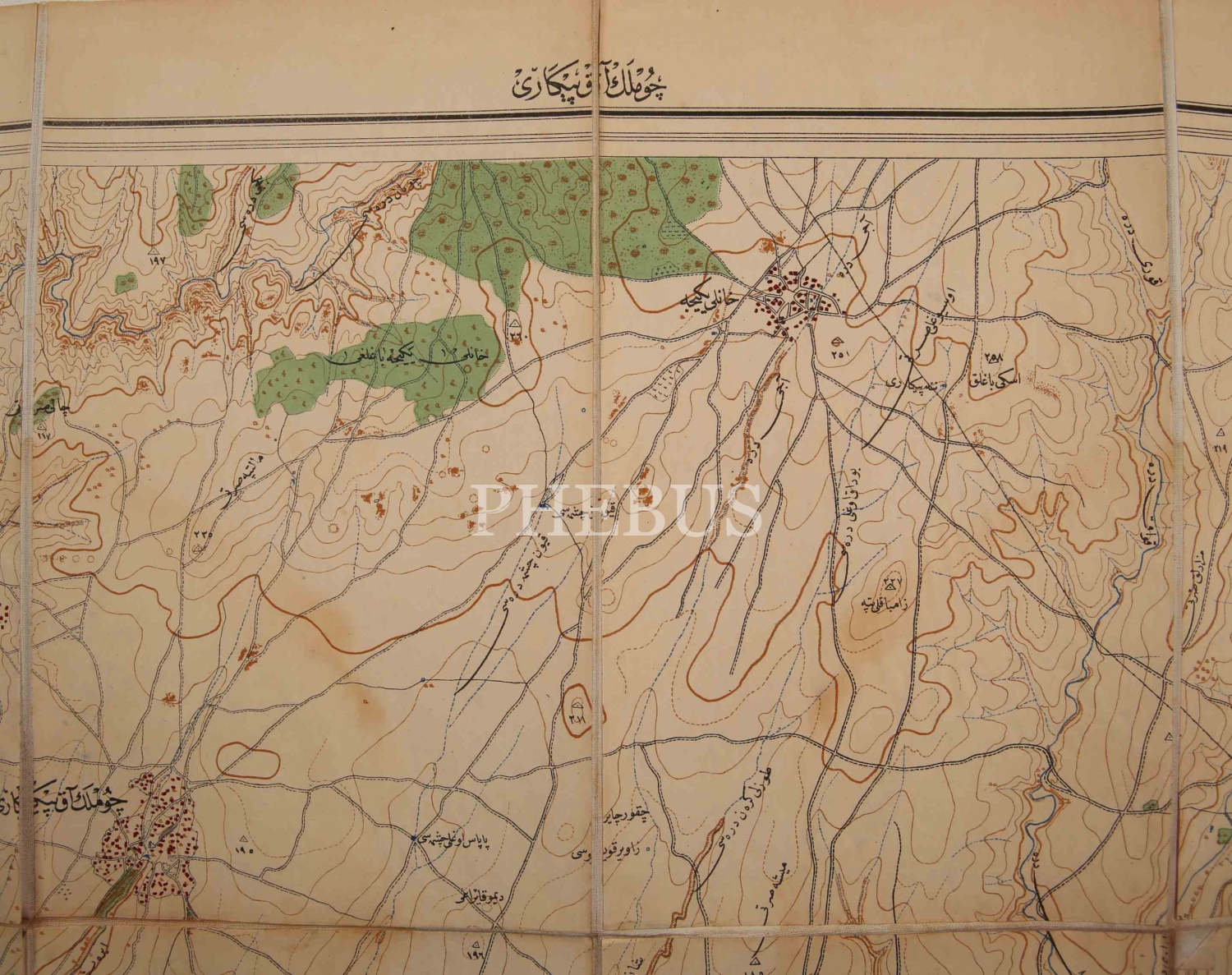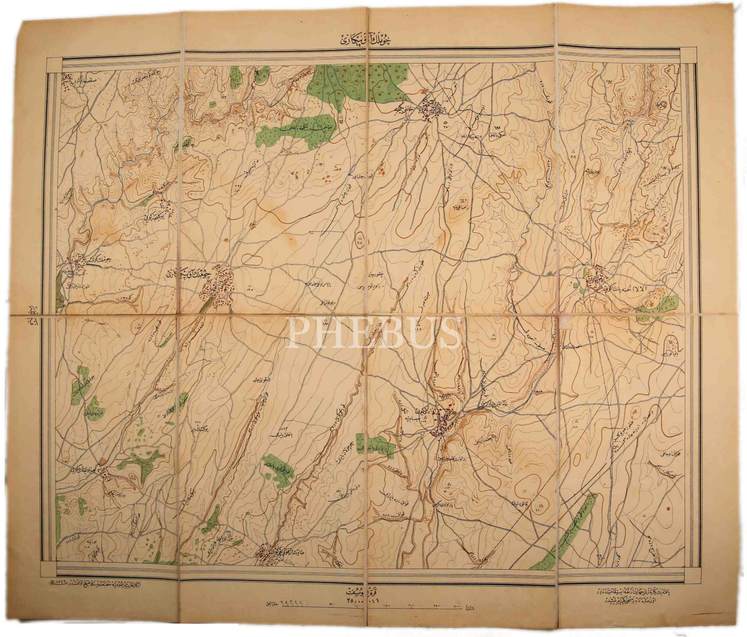 Osmanlıca Çömlek Akpınarı [Edirne] ve Kara Yusuf Haritası, Erkân-ı Harbiye Matbaası'nda Basılmış, Mehmed Şükrü [Sagun] Paşa'nın Terekesinden, 58x50 cm