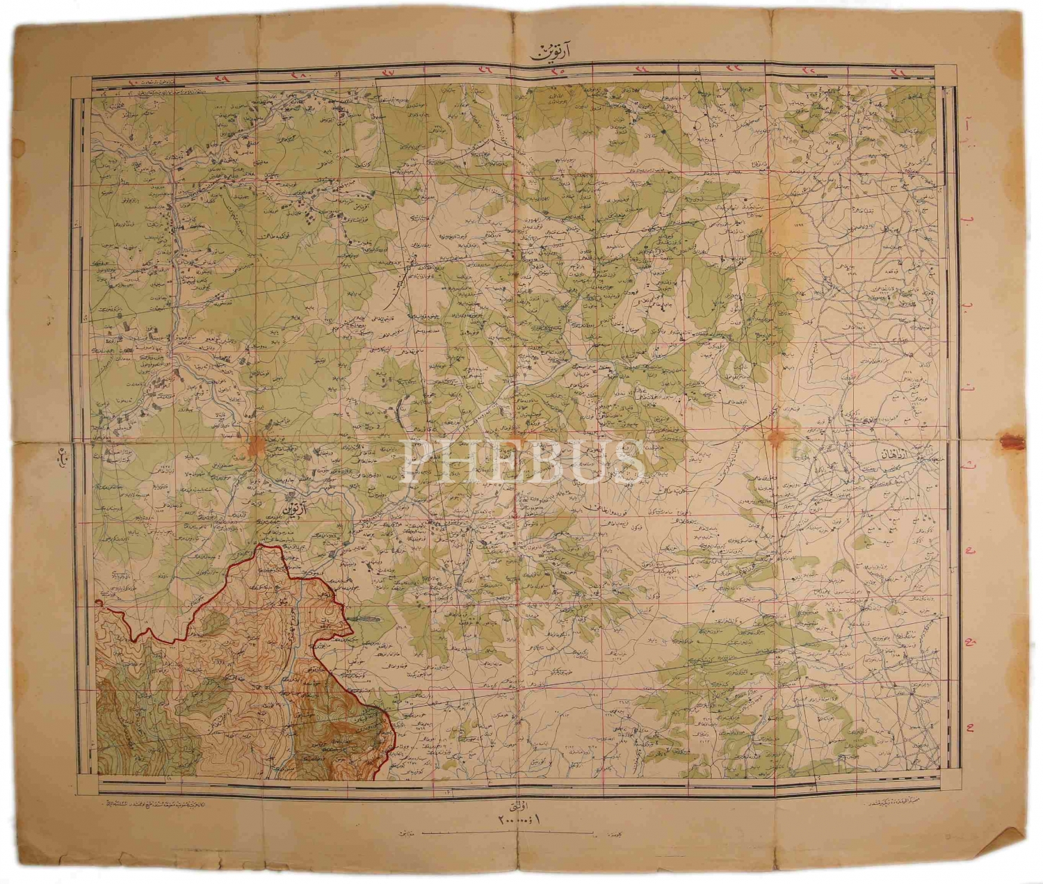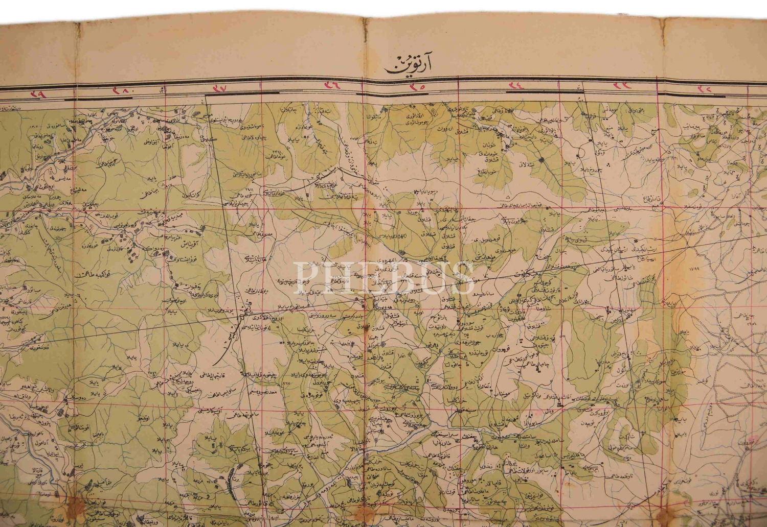 Osmanlıca Artvin Haritası, Erkân-ı Harbiye-yi Umûmiye Matbaası'nda Basılmış, Mehmed Şükrü [Sagun] Paşa'nın terekesinden, 60x50 cm
