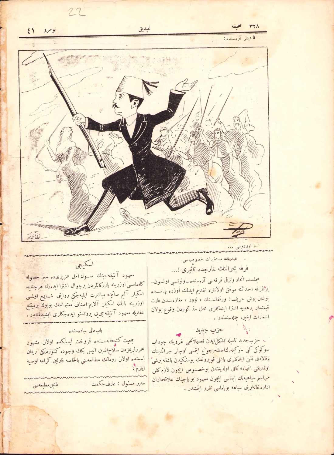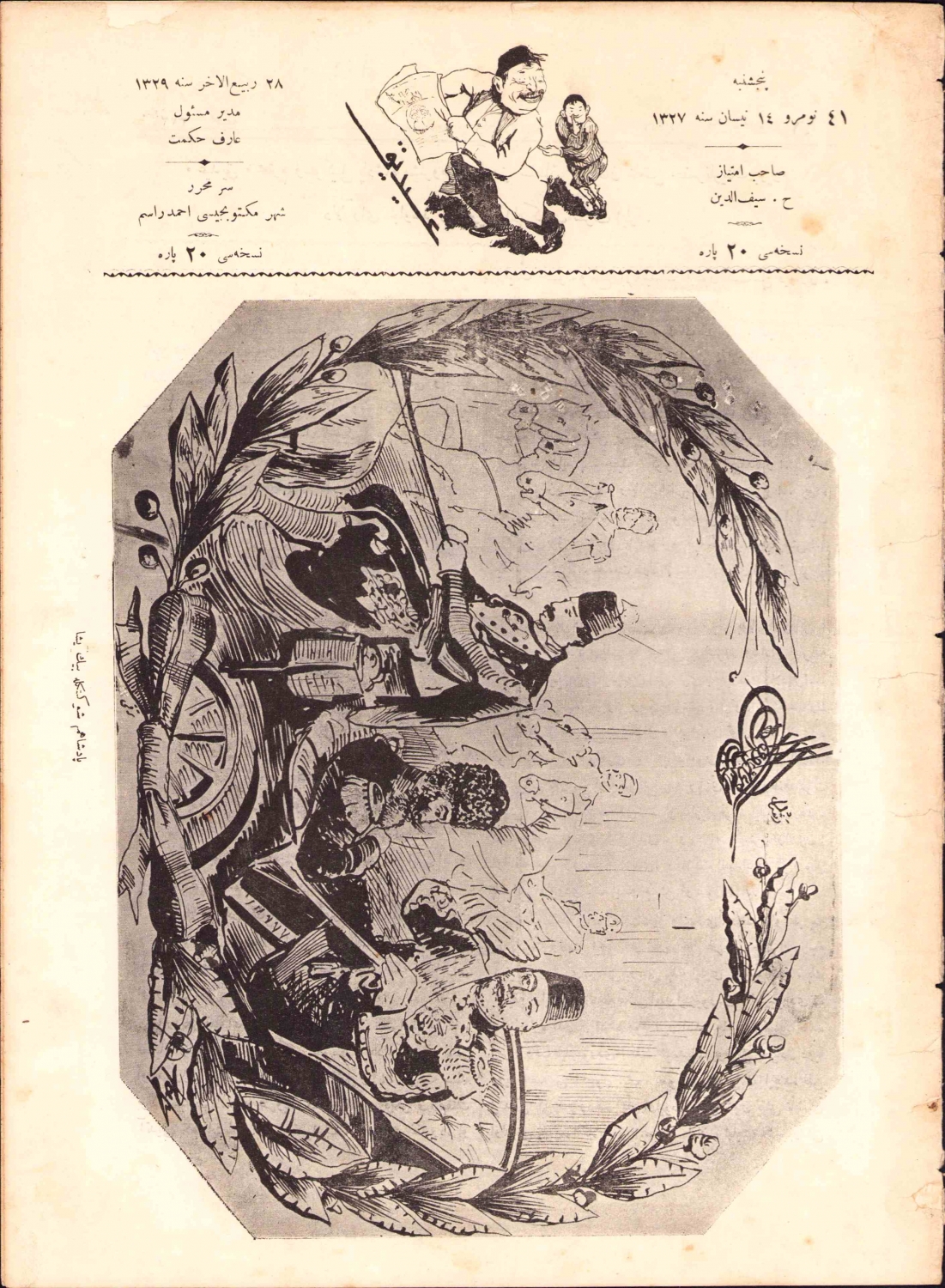 Osmanlıca Gıdık Mizah Gazetesi, 1328 tarihli, Kapak Sultan V. Reşad görselli,