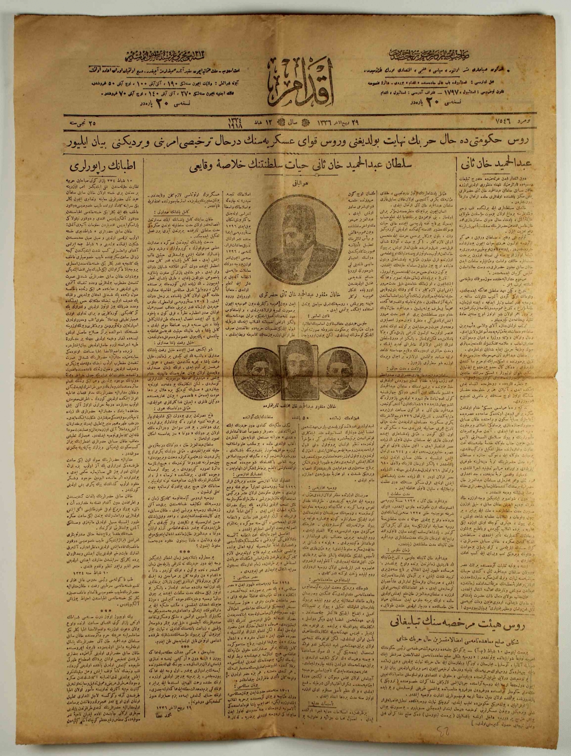 Osmanlıca İkdam Gazetesi, 1334 tarihli, Sultan Abdülhamid Han Sani Hayat-ı Saltanatının Hülasa-i Vekayi', 2 sayfa, 44x60 sayfa