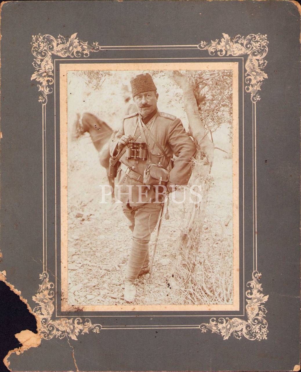 Osmanlı Ordusu 17. Alay 3. Tabur Kumandanı, arkası Osmanlıca ithaflı, sol alt köşesi kopuk haliyle, 13x18 cm