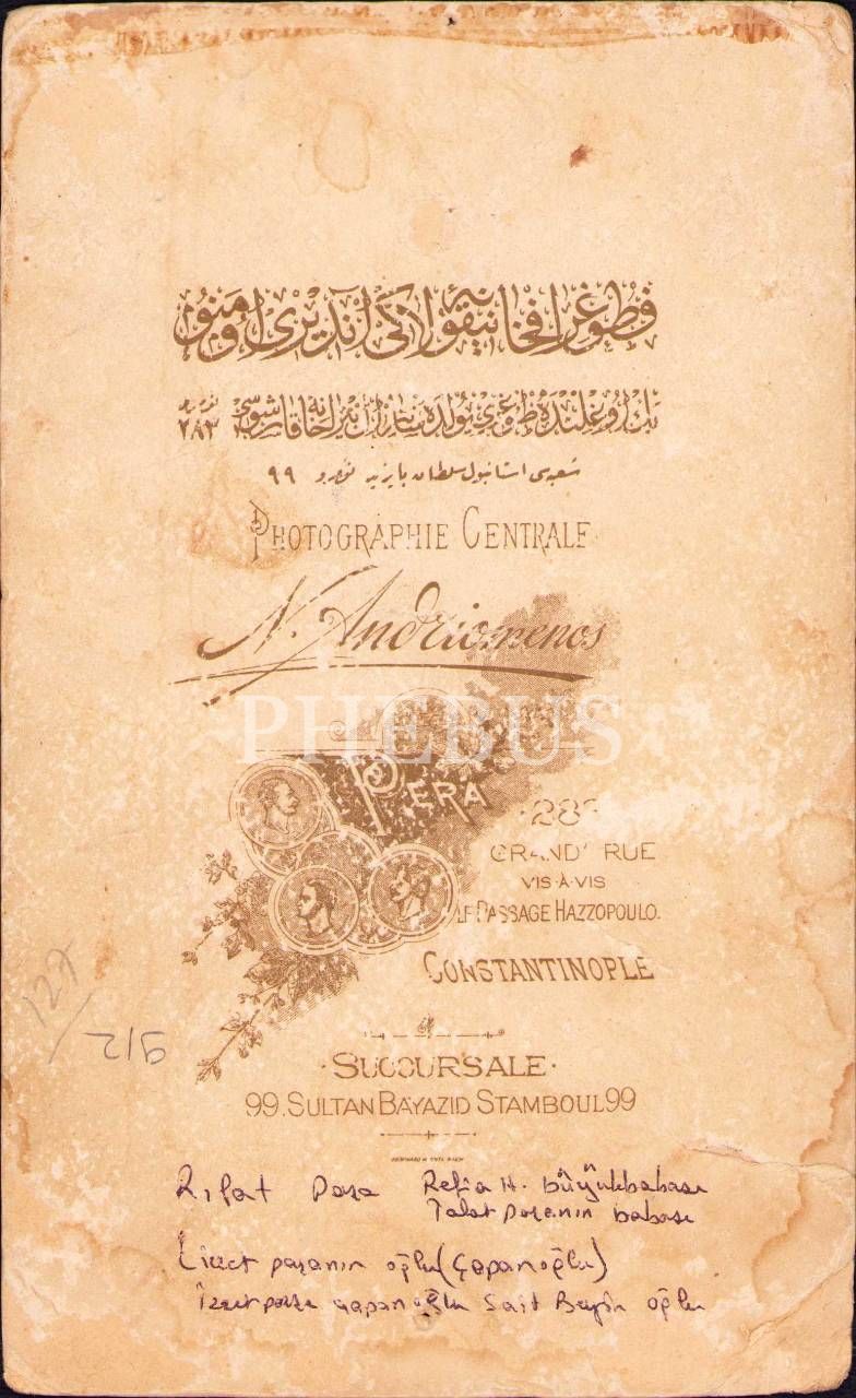Rıfat Paşa Kabin Fotoğrafı, N. Andriomenos Fotoğrafhanesi, 13x21 cm