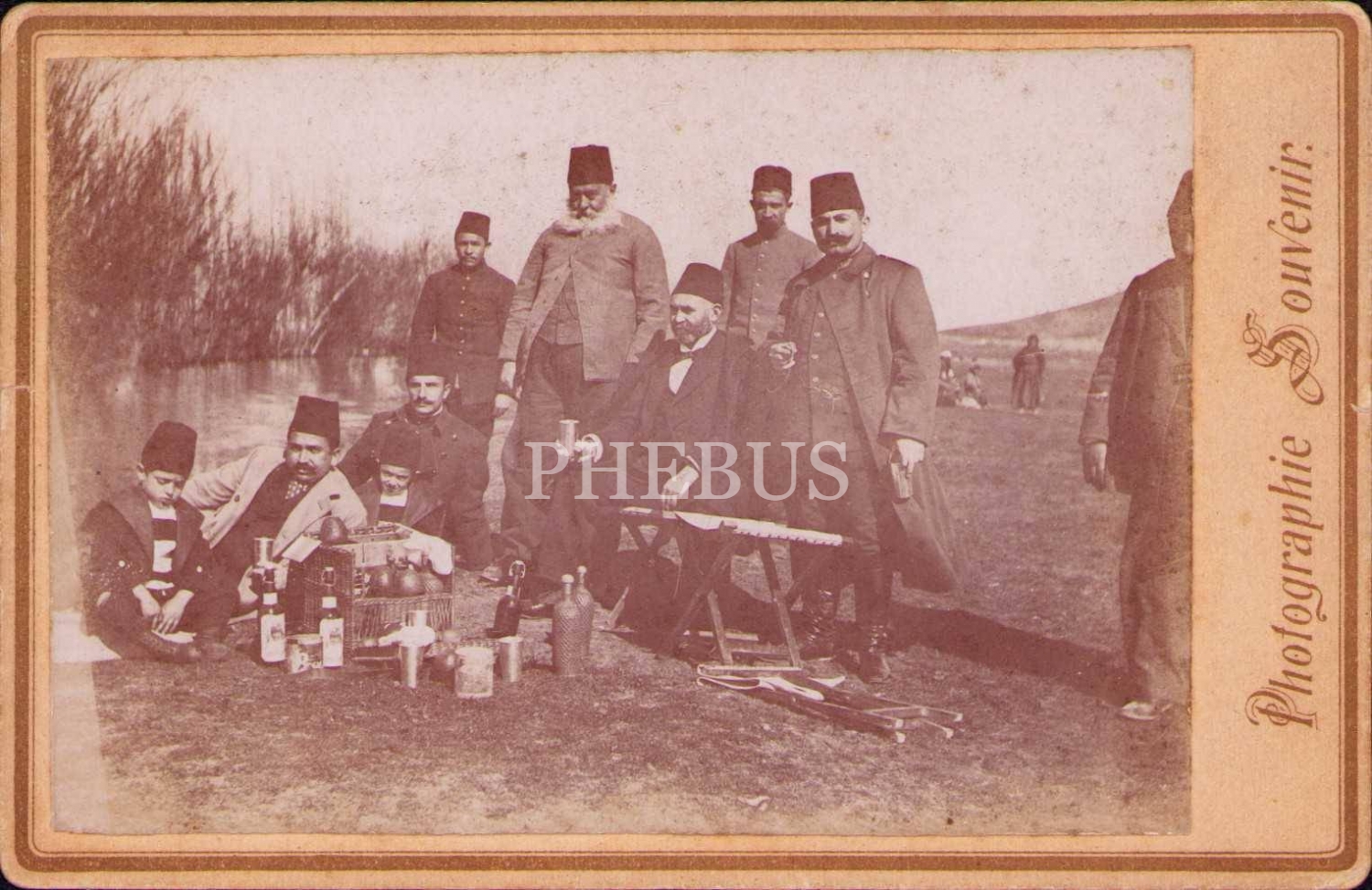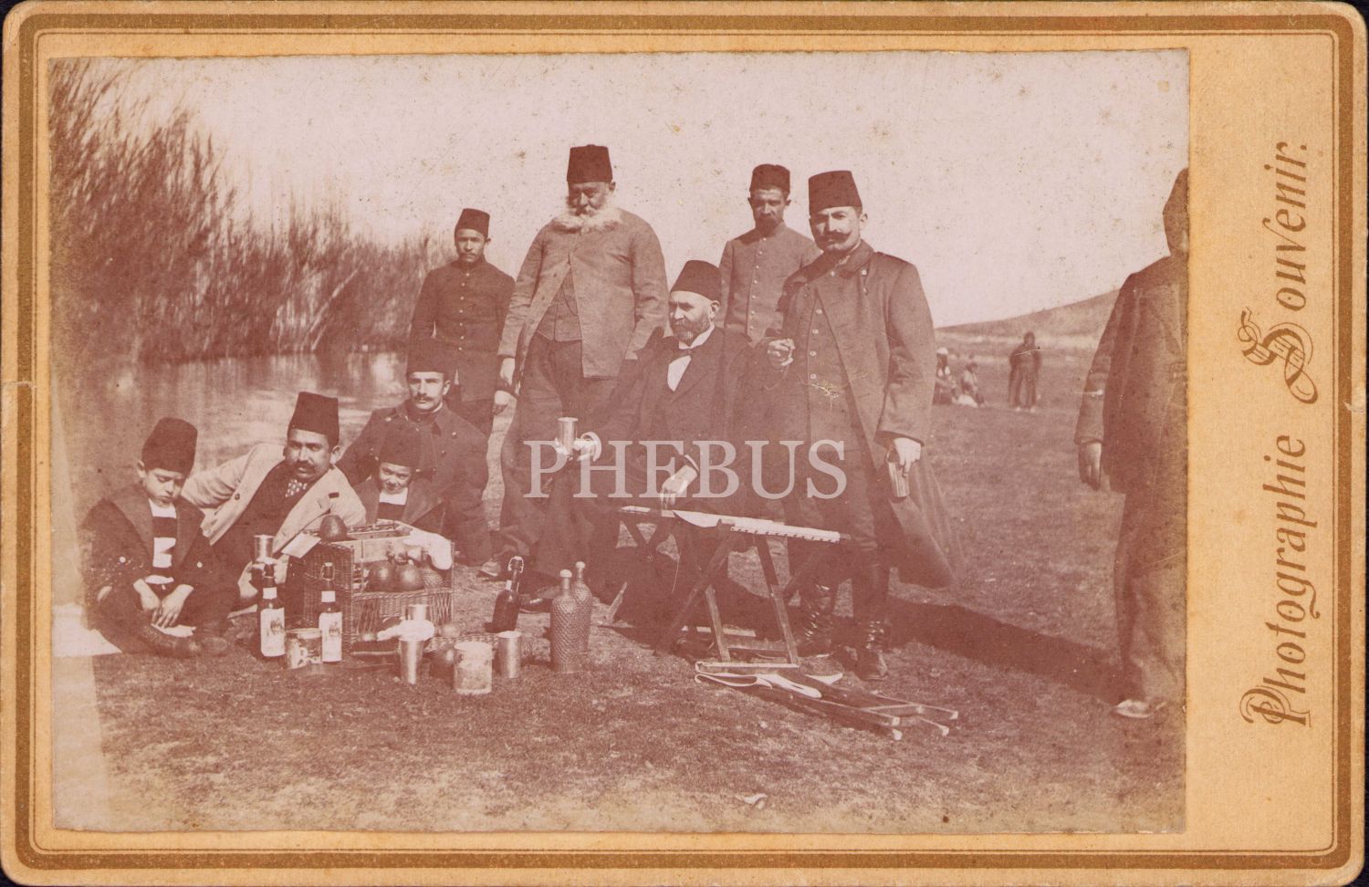 Balkan ve Birinci Cihan Harbi Kumandanlarından Hasan İzzet [Arolat] Paşa ve Fesli Tipler Piknik Esnâsında, 1314 tarihli, 13x8 cm