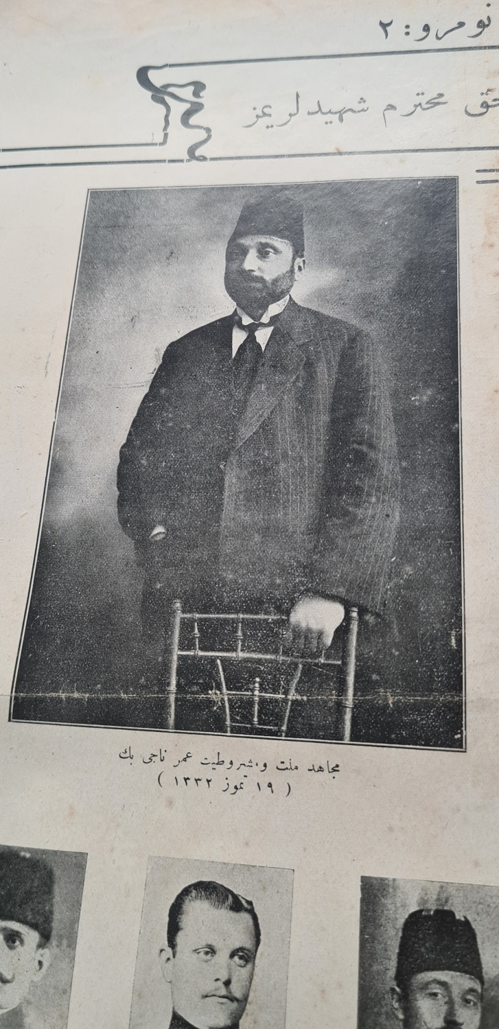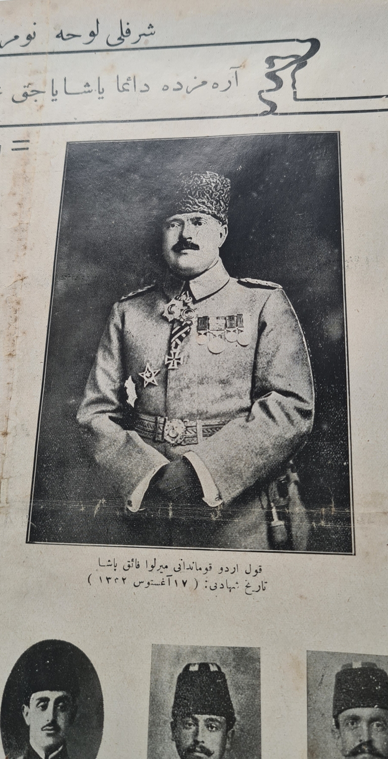 Sol tarafta, Atatürk'ün çok yakın arkadaşı, Kerkük'te şehit olan İttihat Terakki'nin büyük hatibi Ömer Naci Bey. Sağ tarafta, Faik paşa, Çanakkale cephesinde Liman Von Sanders'in komutası altındaki 5. ordunun 2. kolordu komutanı oldu. 1916 yılında Kafkas cephesinde 2. Kolordu'ya komuta ettiği sırada 30 Ağustos 1916 tarihinde Çavreşi Dağları etrafında devam eden muharebe sırasında bir kurşunun isabet etmesi sonucu şehit oldu.