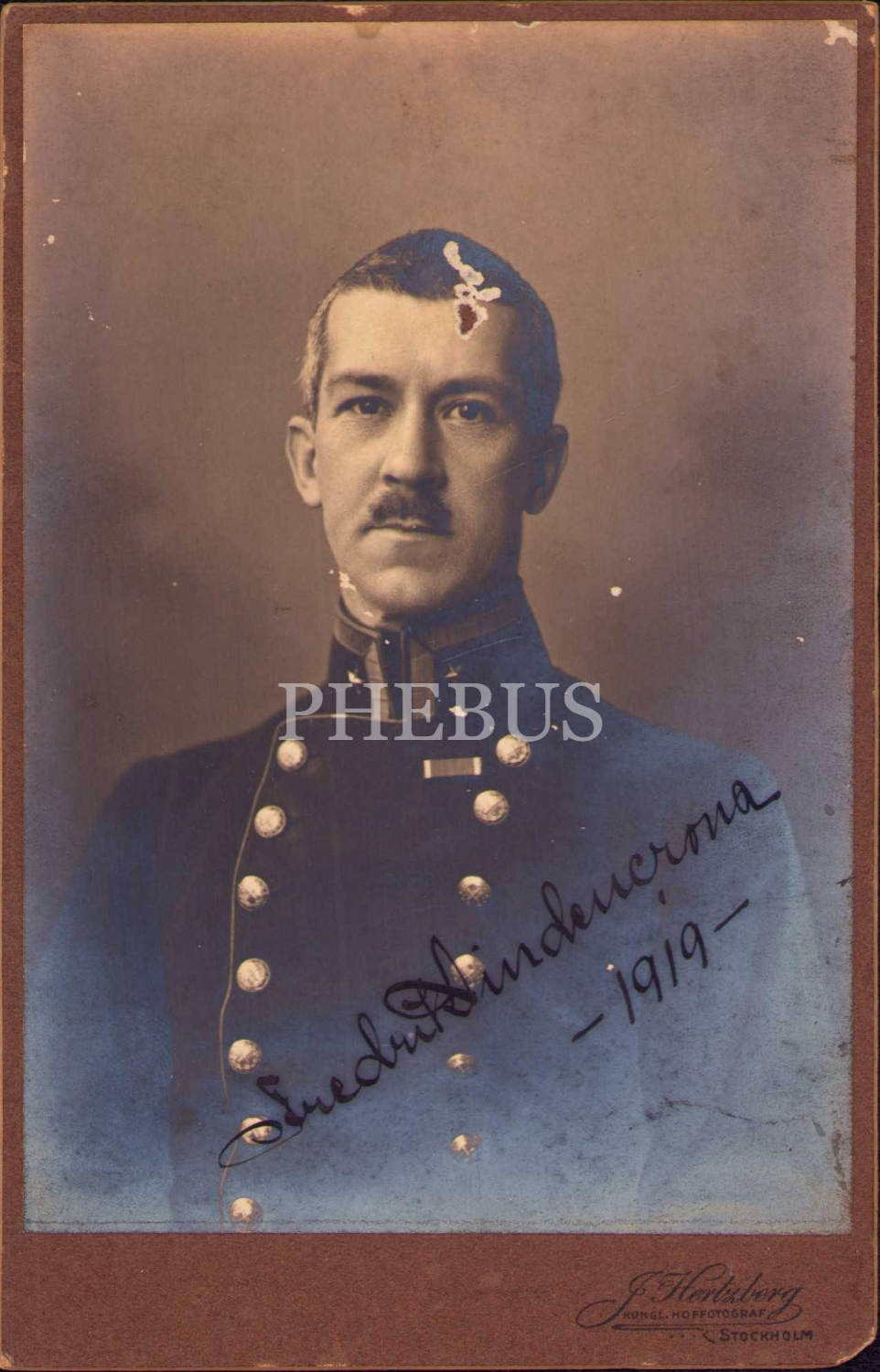 Yabancı Üniformalı Asker Kabin Fotoğrafı, F. Hertberg Stockholm, 1919 tarihli, haliyle, 11x14 cm