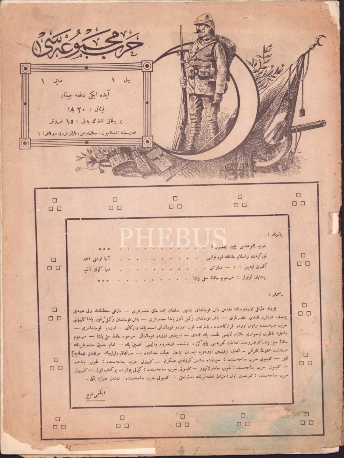 Osmanlıca Harb Mecmuası'nın İlk Sayısı, Teşrinisani 1331 tarihli, 16 sayfa, kapak ve sayfaları yorgun vaziyette, 25x33 cm