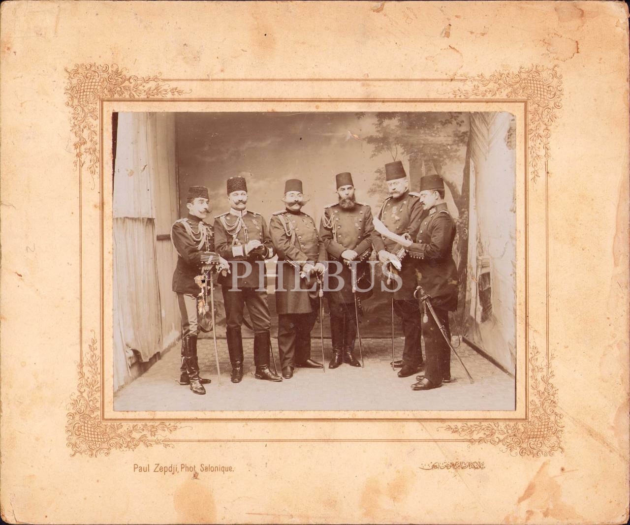 Mehmed Şükrü Sagun Paşa Sultan Hamid Devri Devlet Adamları ile Kabin Fotoğraf, Selanik Paul Zepdji Fotoğrafhanesi, 23x17 cm