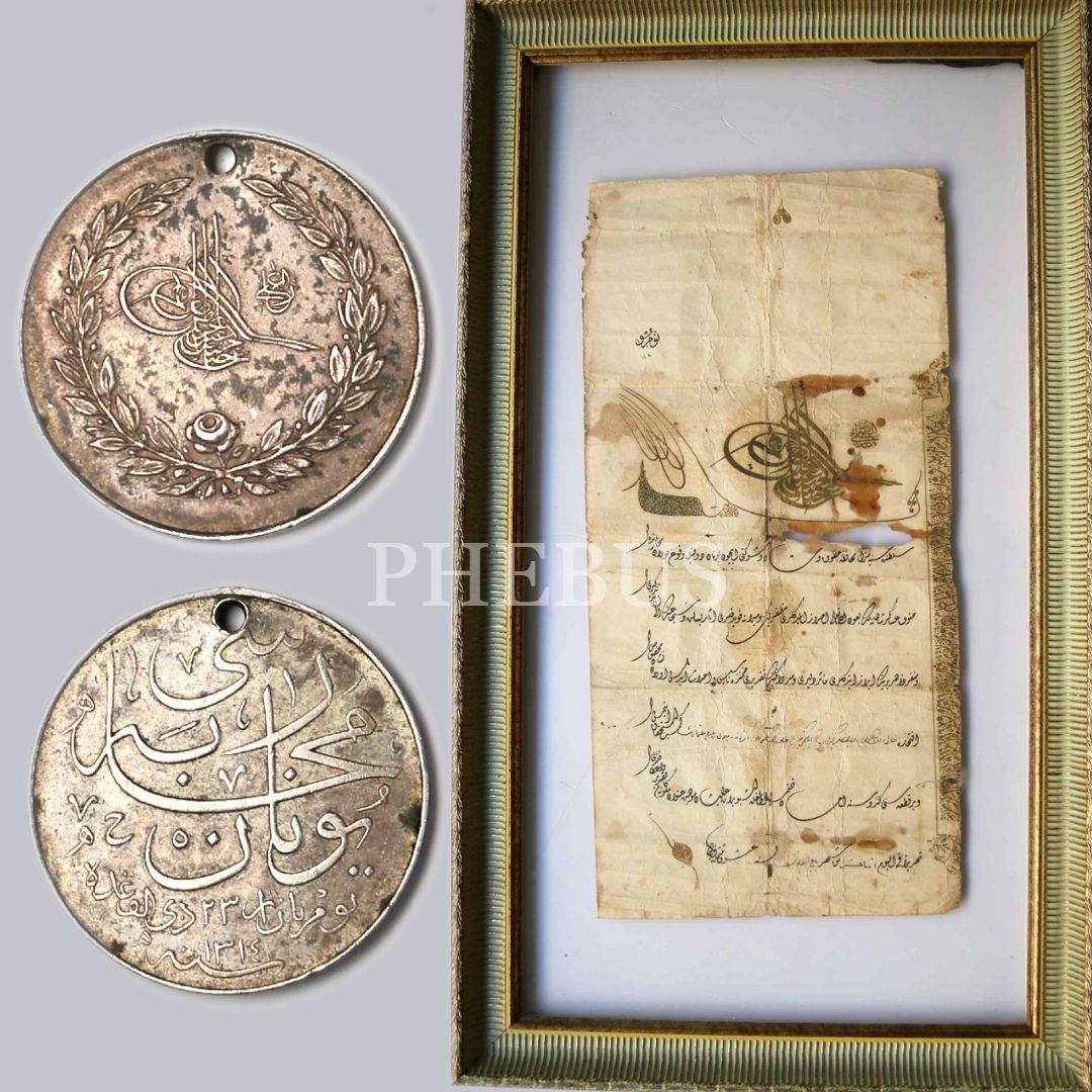 Sultan İkinci Abdülhamid Han Tuğralı Bilal b. Ali Osman İçin Verilen 1310 Târihli Yunan Harbi Madalya Beratı ve 1314 târihli Yunan Muharebesi Madalyası [1314 tarihli]