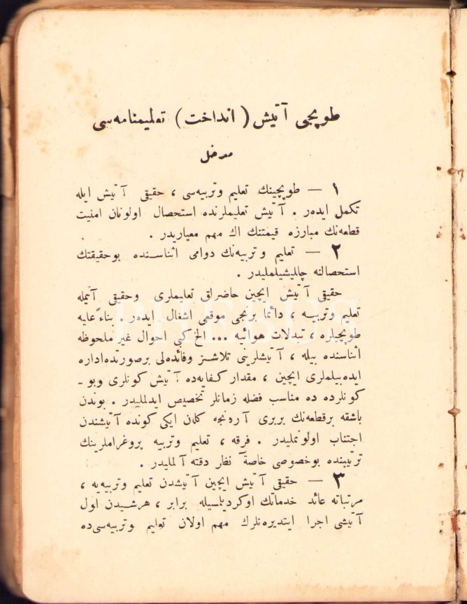 Osmanlıca Topçu Nizamnamesi, sayfalar hâliyle ve künye eksik hâliyle, 270 sayfa, 11x15 cm