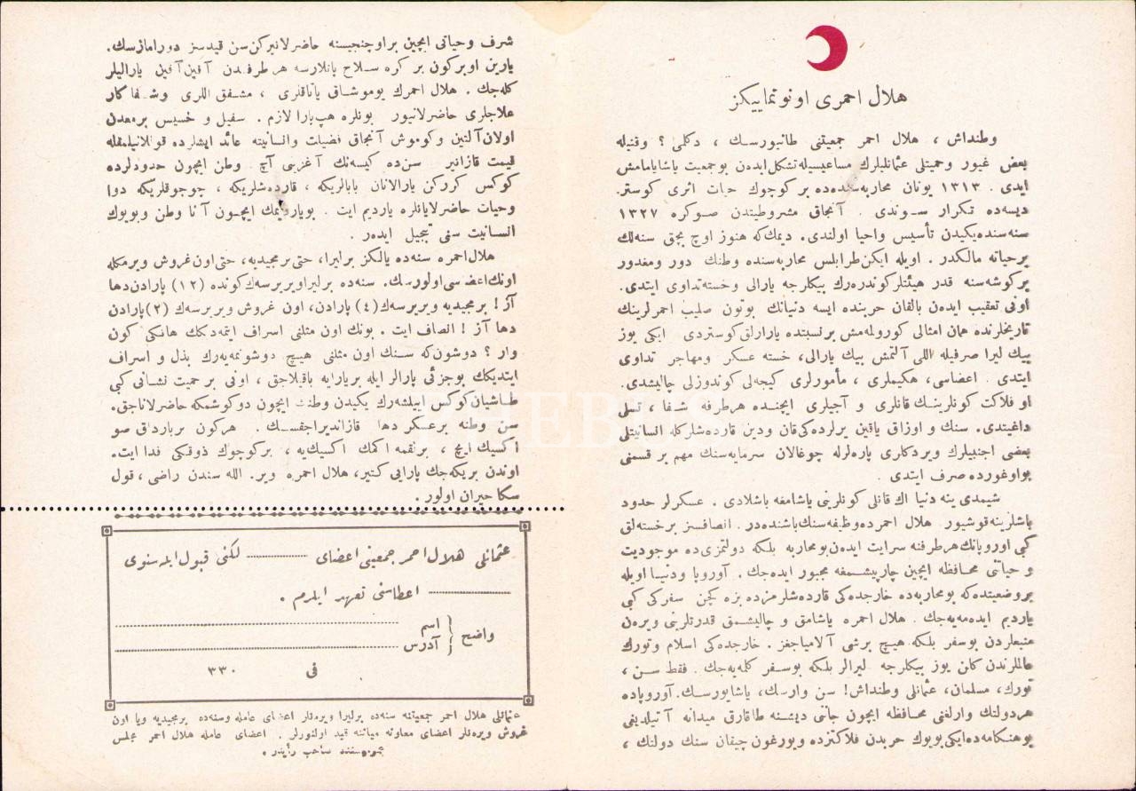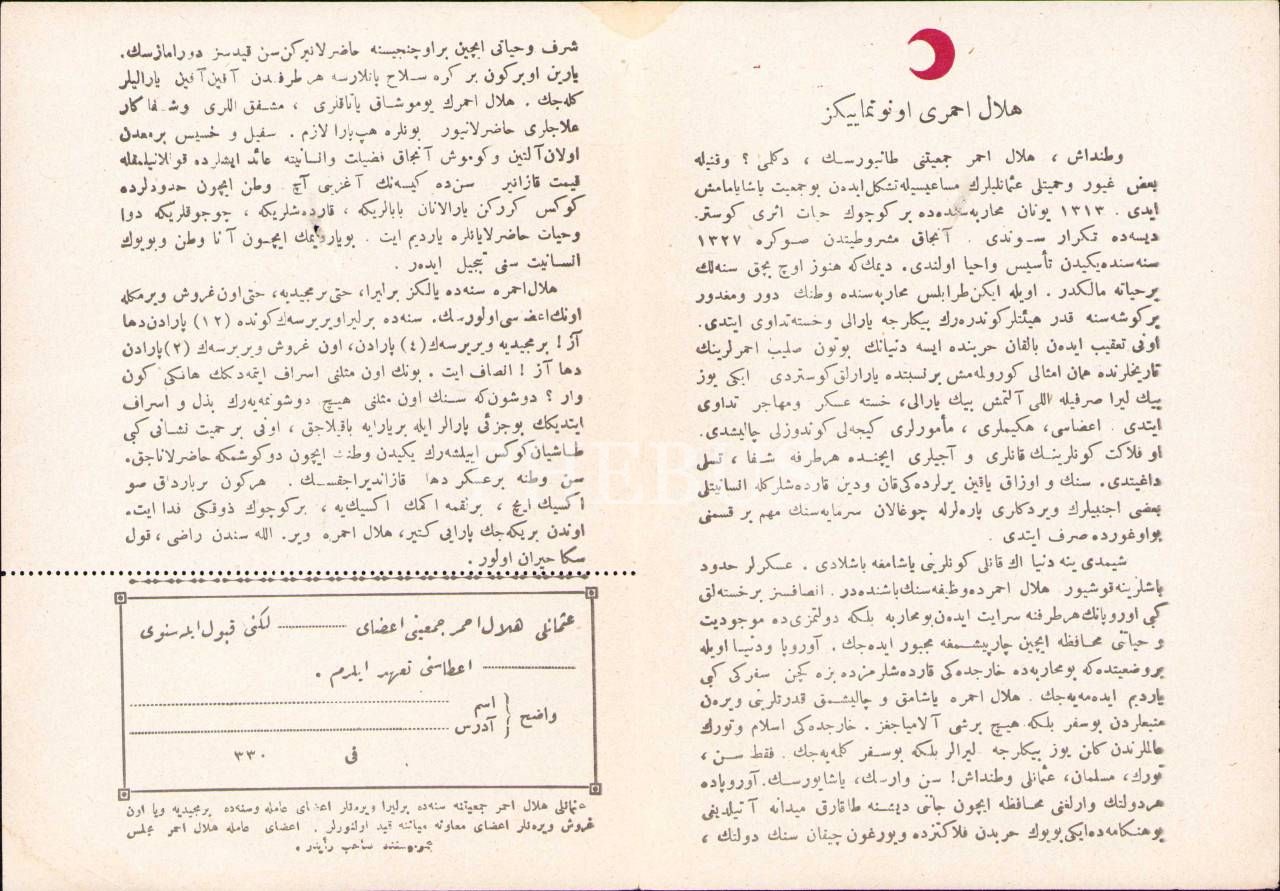 Hilal-i Ahmer Cemiyeti'ne Belirli Miktarda Yardım Yapanların Üyelik Kayıt Makbuzu, Osmanlıca, hâliyle, 13x18 cm