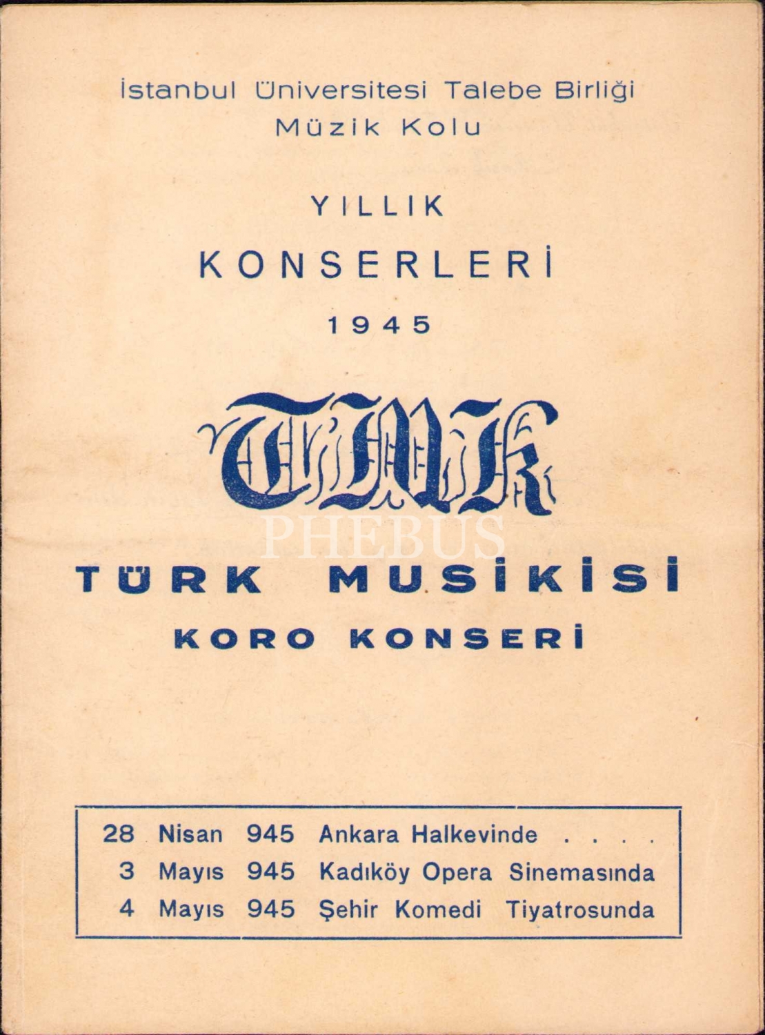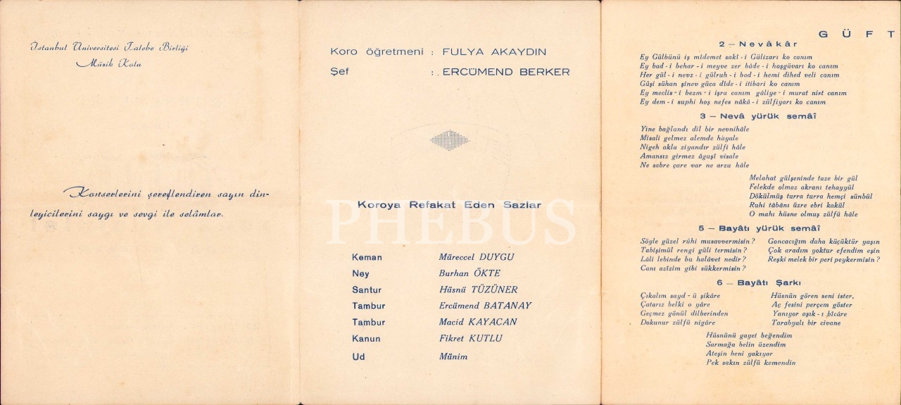 İ.Ü. Talebe Birliği Müzik Kolu'ndan Türk Musikisi Koro Konseri programı, 12x16 cm