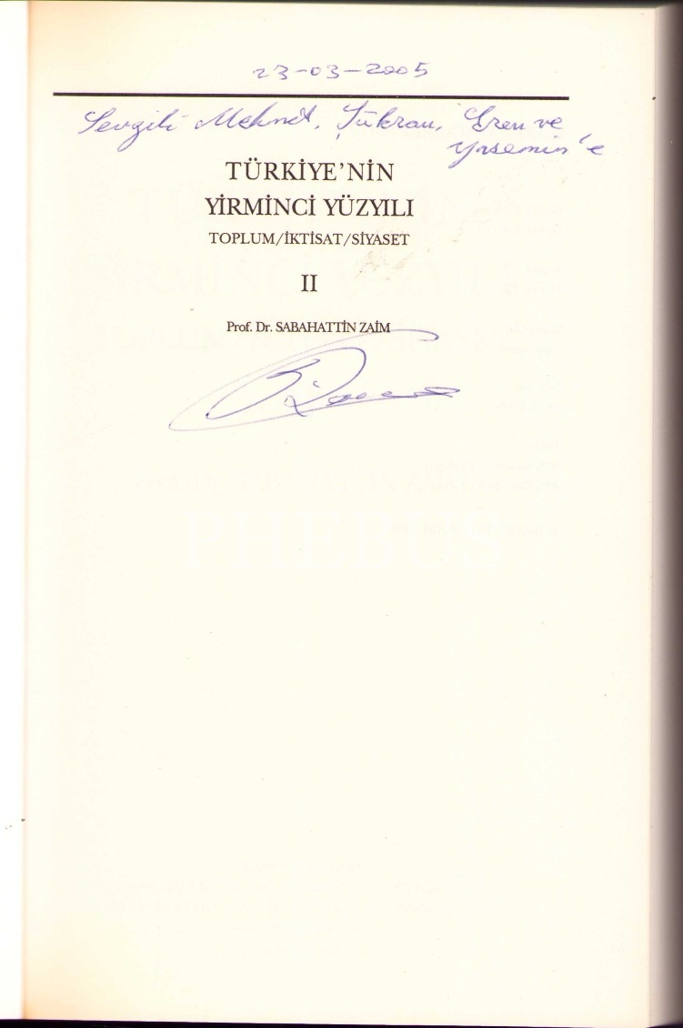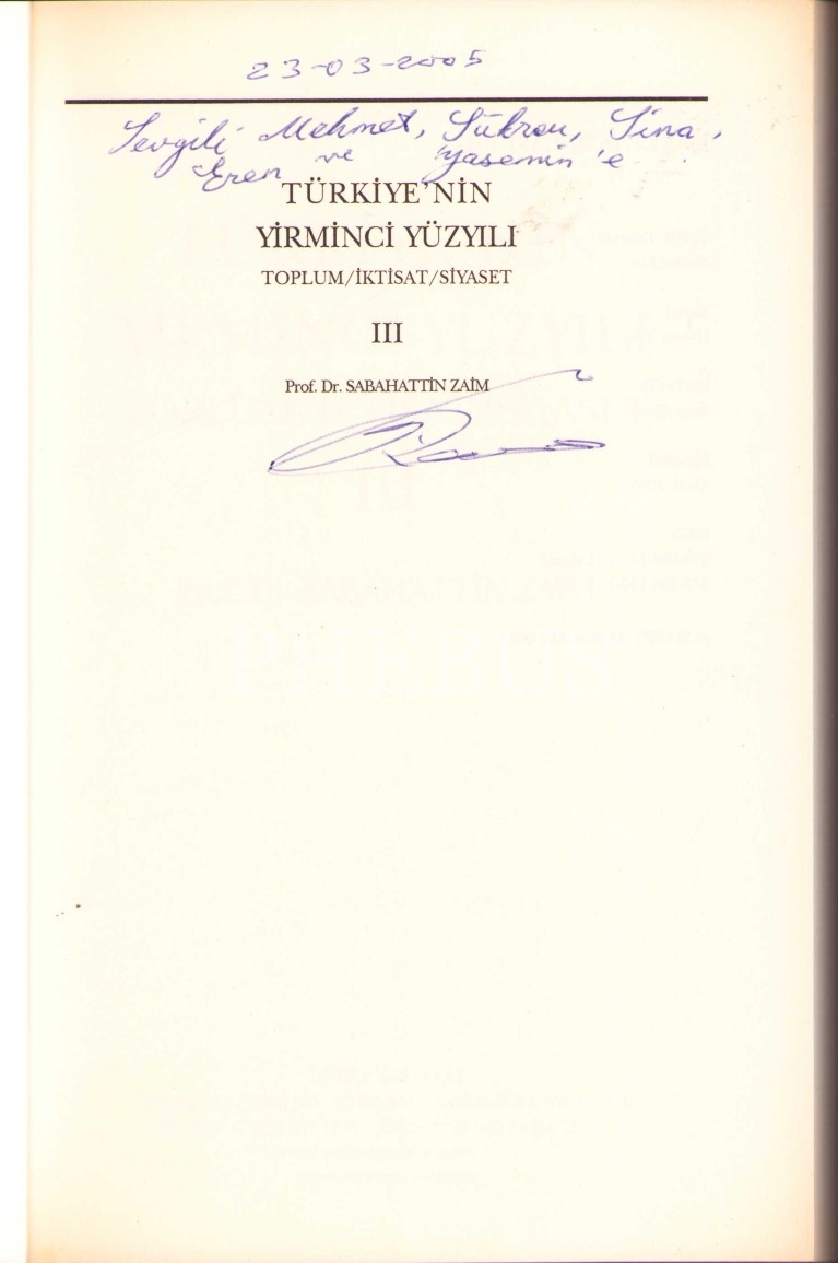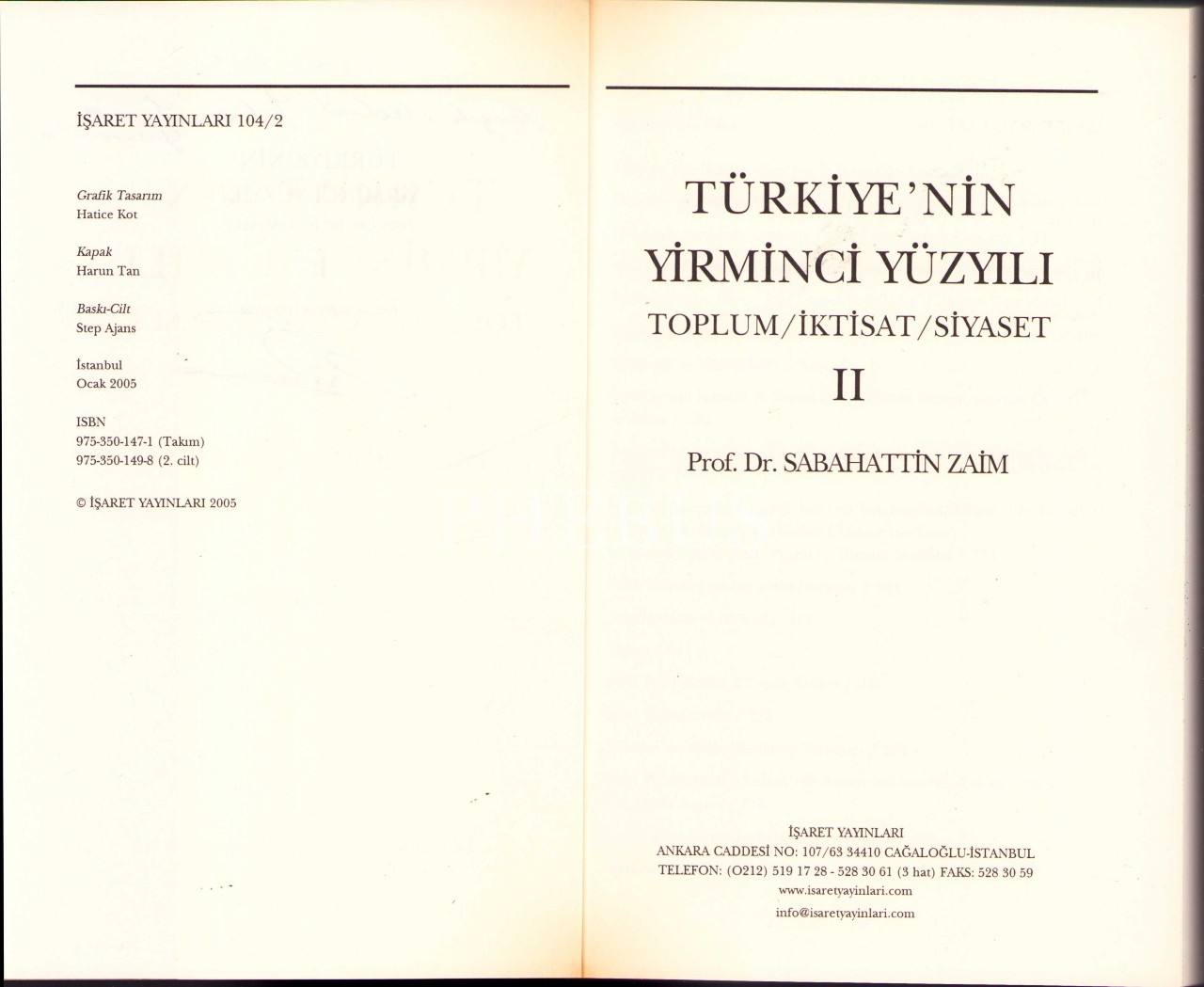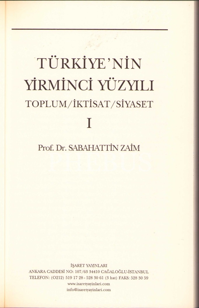Türkiye'nin Yirminci Yüzyılı [3 cilt], Sabahattin Zaim, yazarından ithaflı ve imzalı, İşaret Yayınları, özel kabında, 16x24 cm