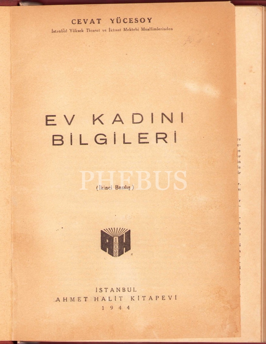Ev Kadını Bilgileri, Cevat Yücesoy, Ahmet Halit Kitapevi, İstanbul 1944, 198 s., 16x23 cm