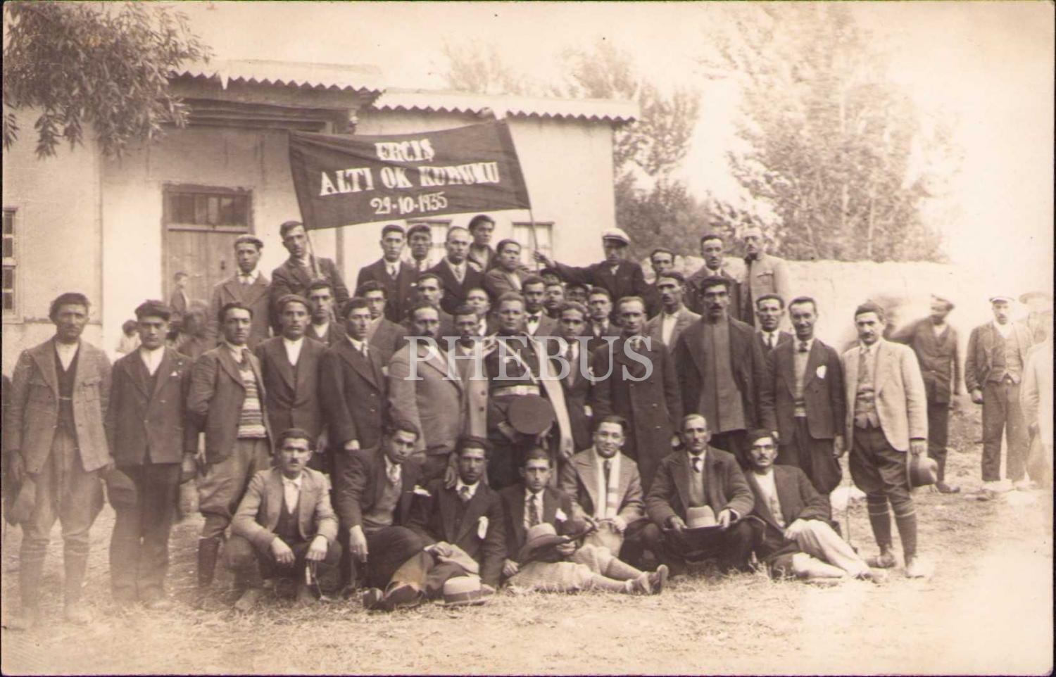 Erciş Altı Ok Kurumu-29.09.1935 pankartının görüldüğü topluluk hatıra fotoğrafı