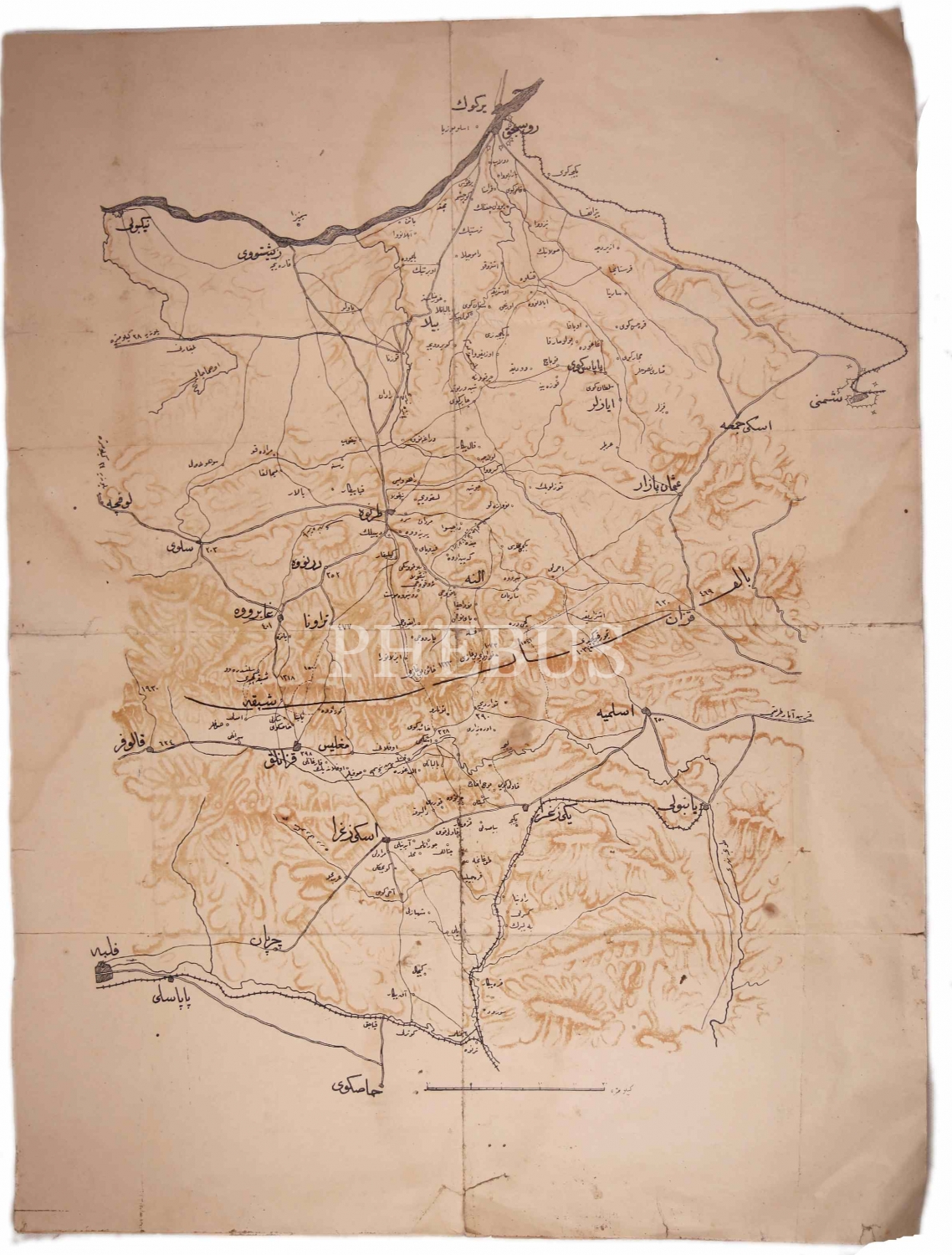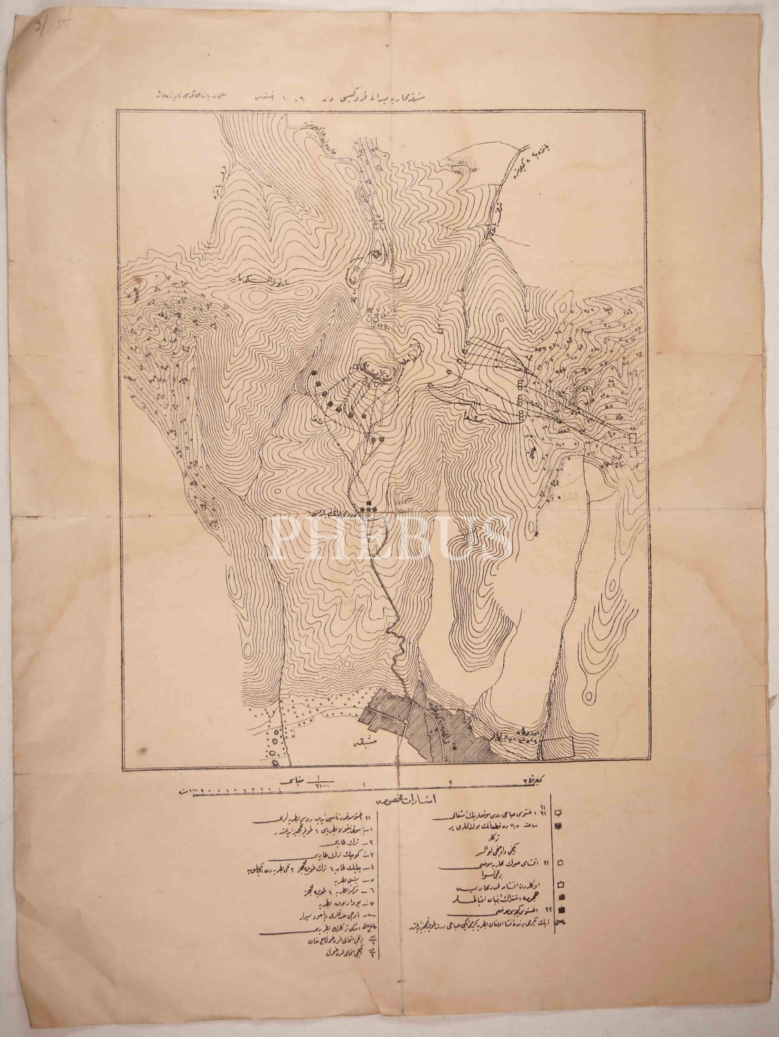 Osmanlıca muharebe meydanı krokisi ve Bulgaristan haritası, 37x49 cm, yorgun haliyle