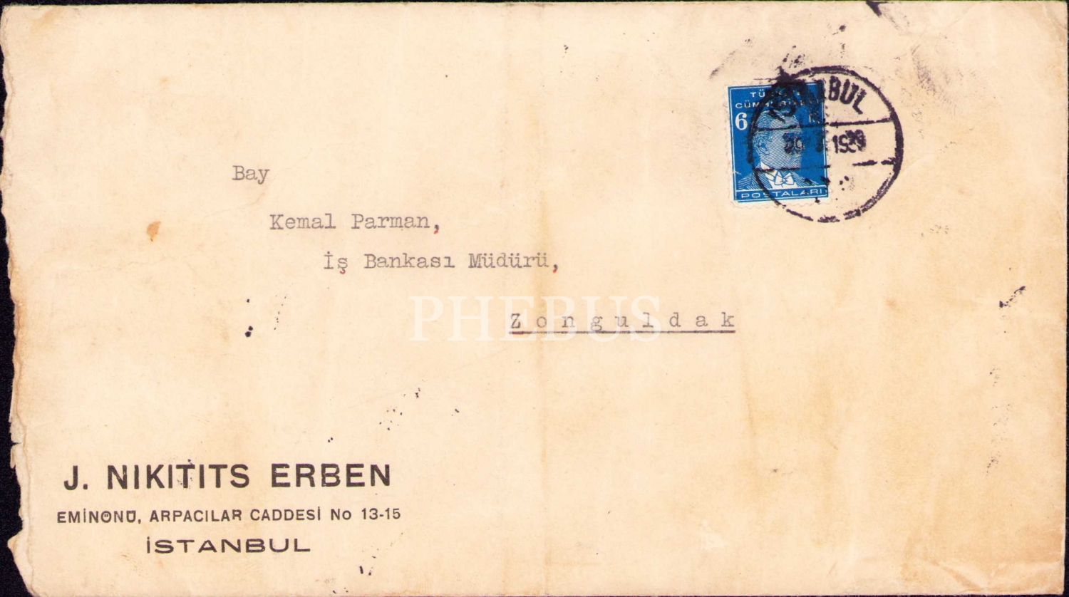 J. Nıkıtıts Erben-İstanbul antetli 90. yıl zarfı, 12x21 cm, yıpranmış haliyle
