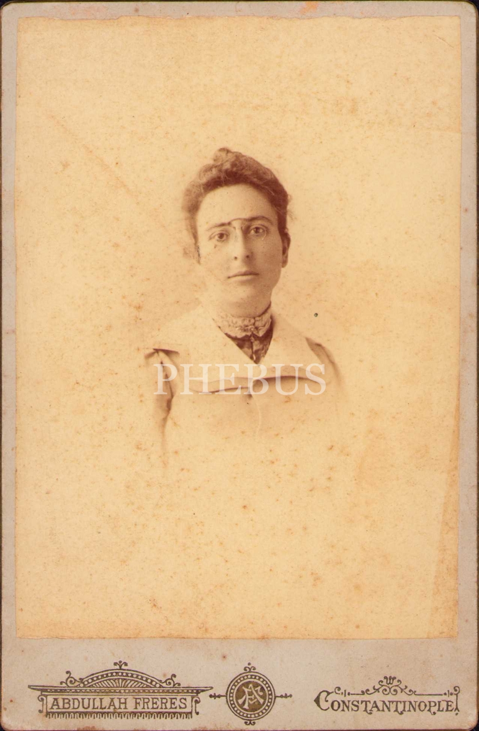 Abdullah Biraderler kadın kabin fotoğrafı, Constantinople, orijinal kılıfı ile birlikte, 10x14 cm, kılıfı yıpranmış haliyle