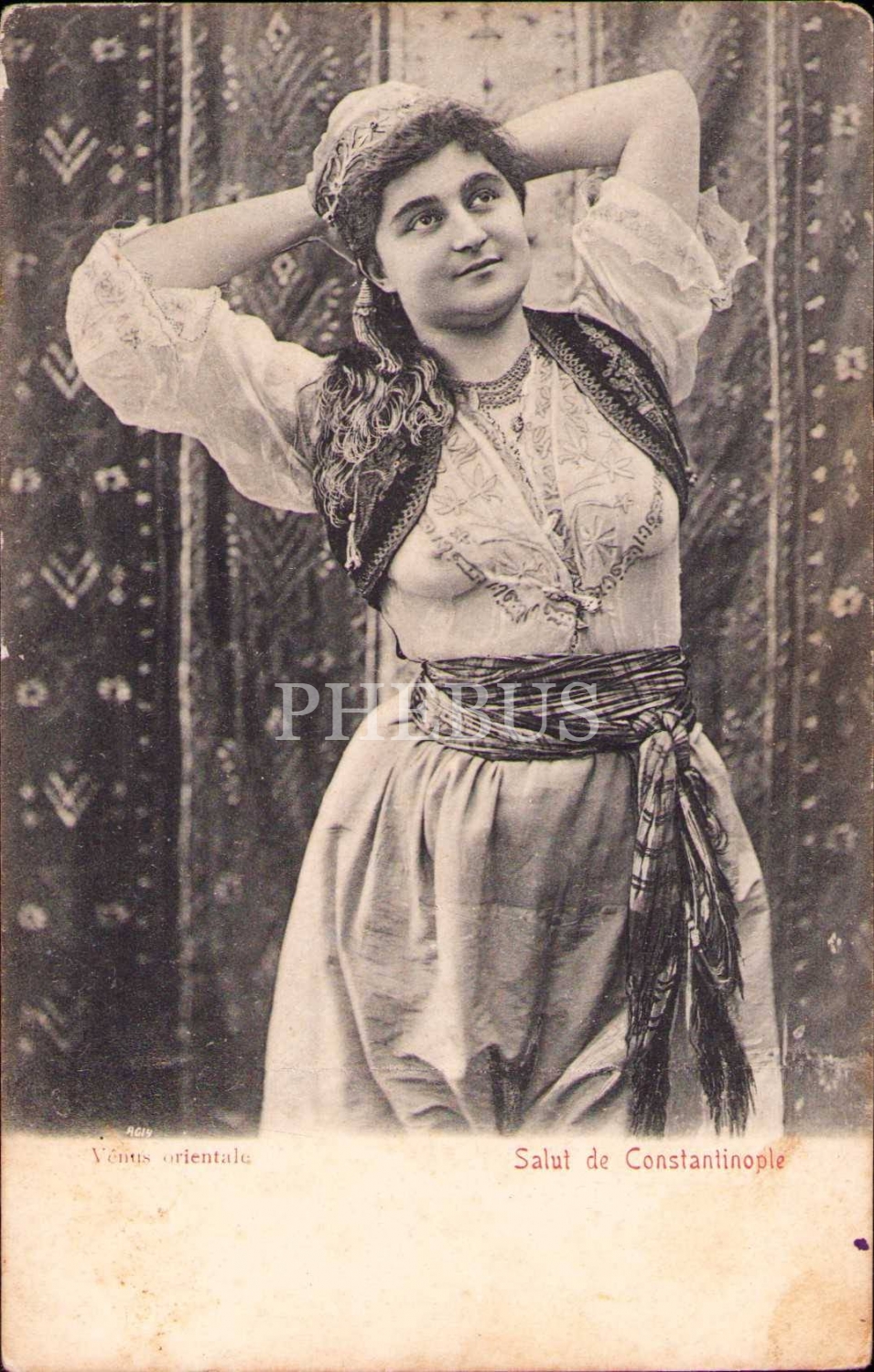 Arkası Osmanlıca yazılı genç kadın kartpostalı, Constantinople, 1337 tarihli