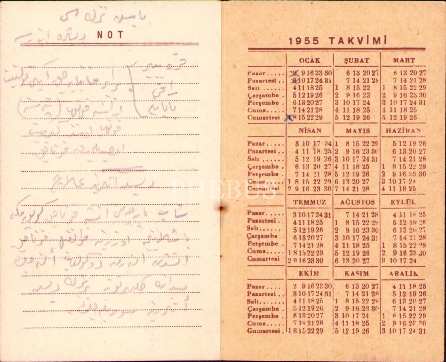 Yeni Eczane Kemal Pamukcu'dan şahsi not defteri, 1955 yılı, 7x11 cm