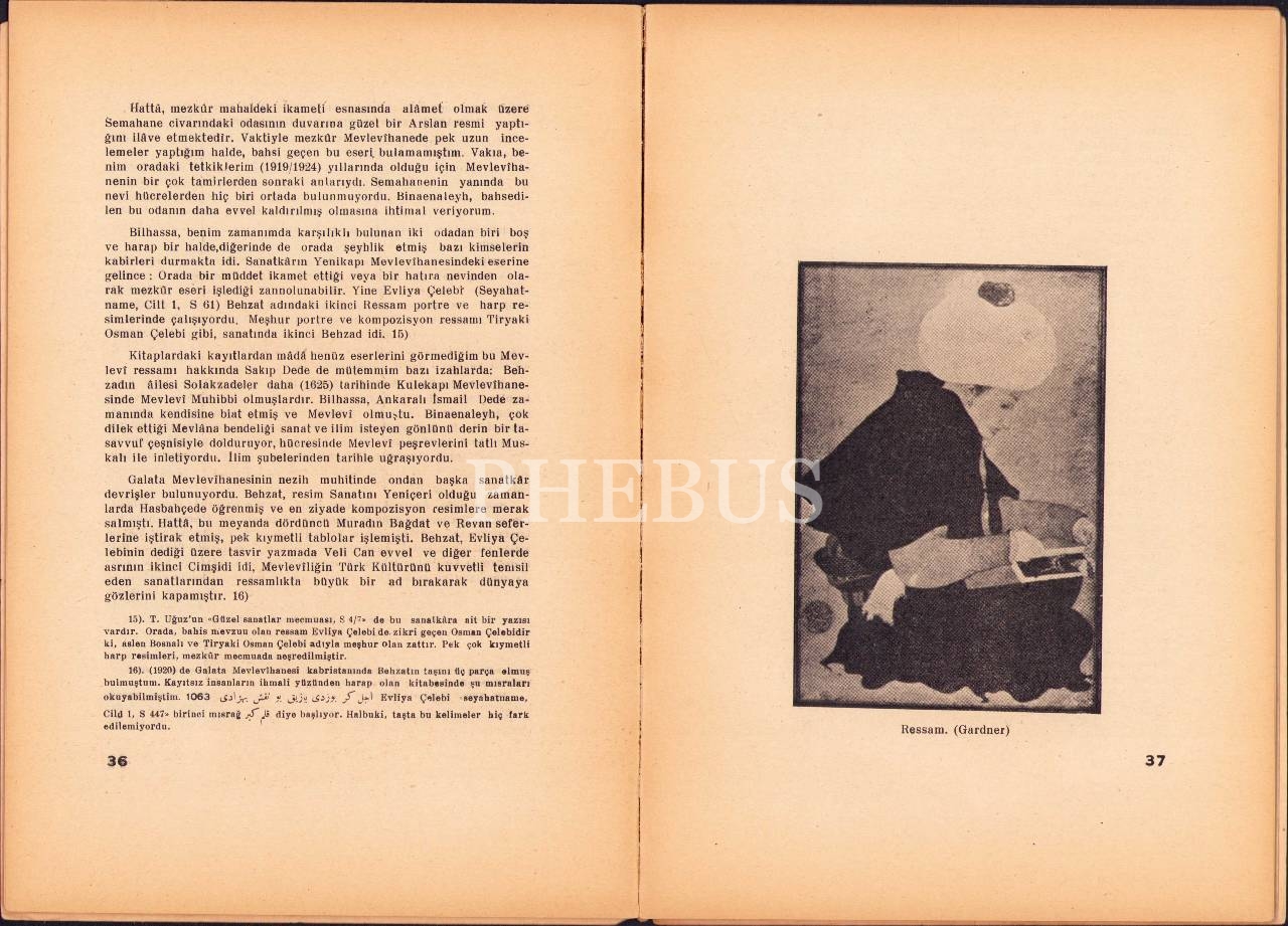 Mevlânanın Ressamları, Şahabettin Uzluk, Yeni Kitap Basımevi, Konya 1945, 91 s., 20x28 cm, cildi yıpranmış haliyle