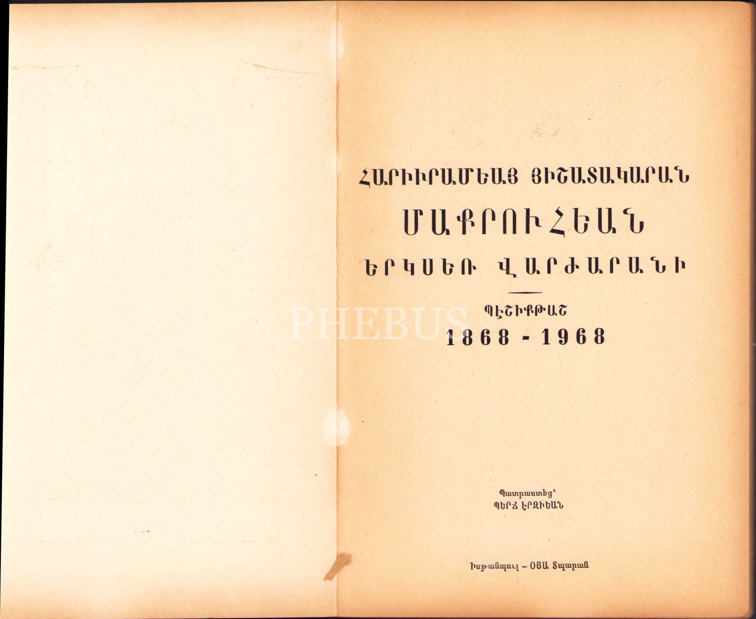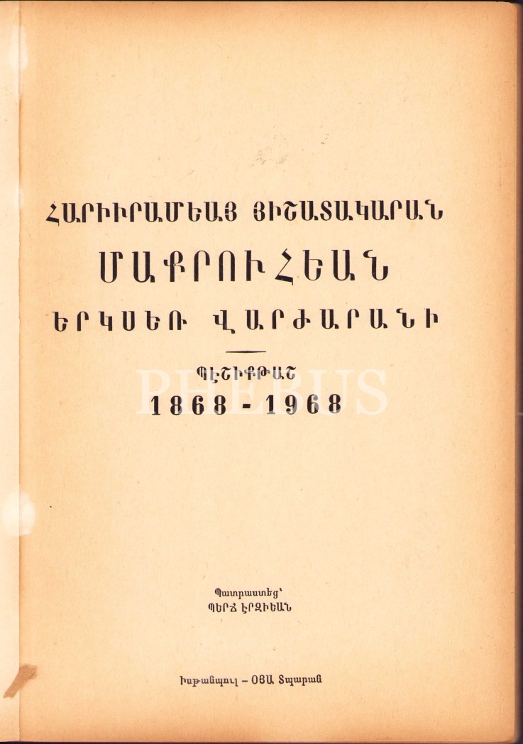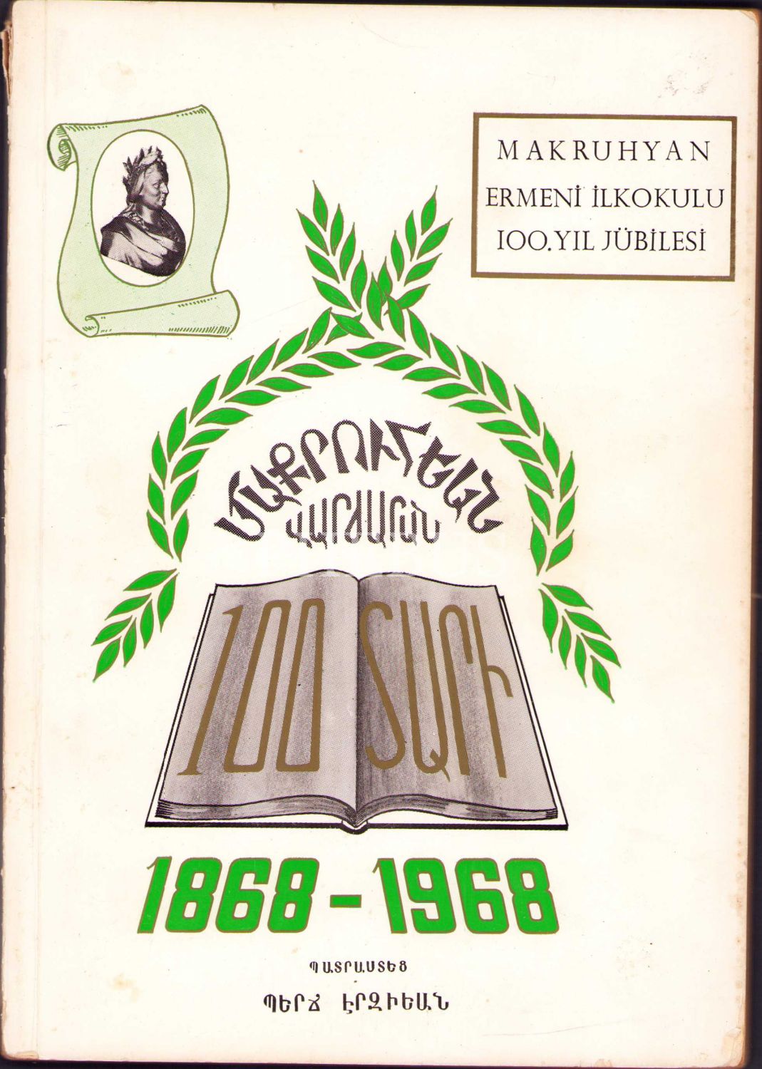 Ermenice Makruhyan Ermeni İlkokulu 100. Yıl Jübilesi, 123 s., 16x23 cm, üst sırtı yıpranmış haliyle