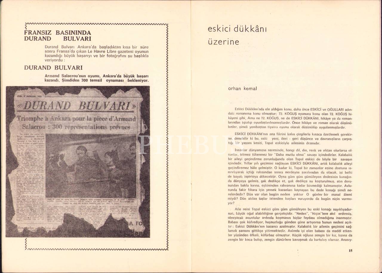 Ankara Sanat Tiyatrosu dergisi 20. sayı, Ağustos 1969, 16x23 cm