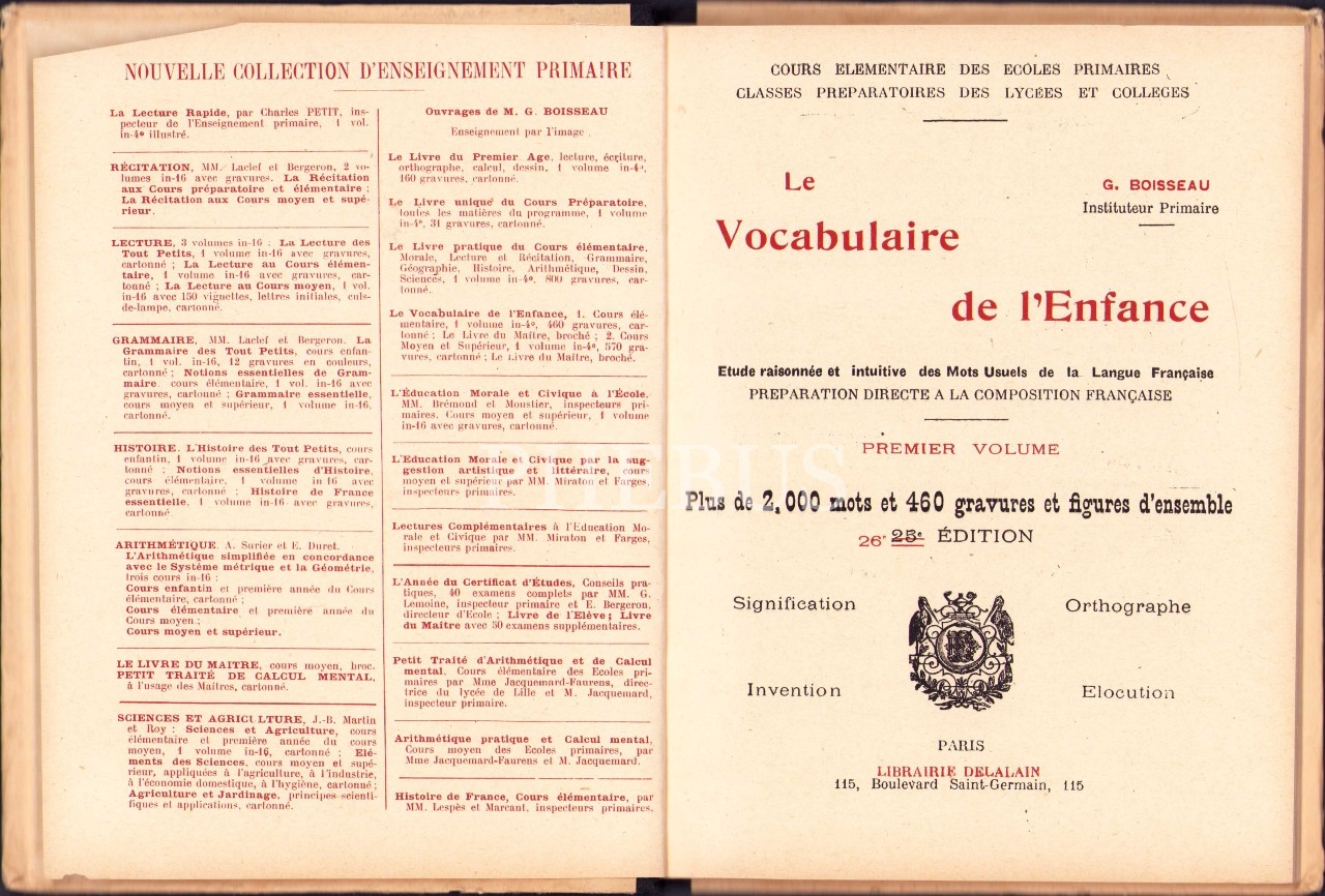 Fransızca Le Vocabulaire de l'Enfance [1. seviye], G. Boisseau, Paris, 92 s., 17x21 cm, cildi yıpranmış haliyle