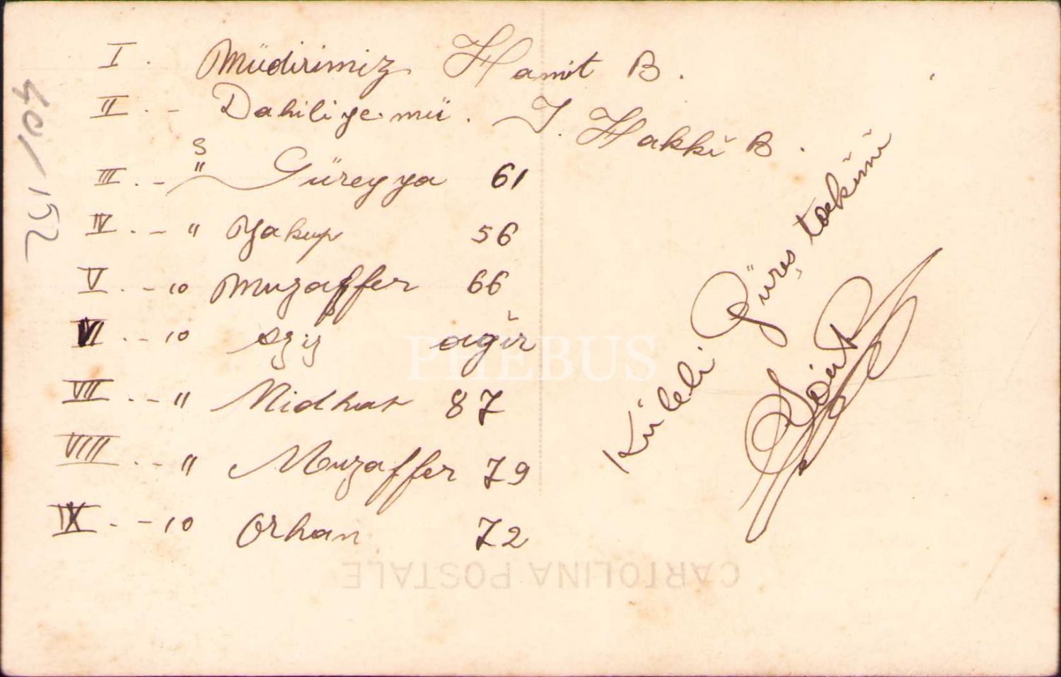 Arka yüzünde, numaralandırılmış kişilerin adları yazmaktadır.