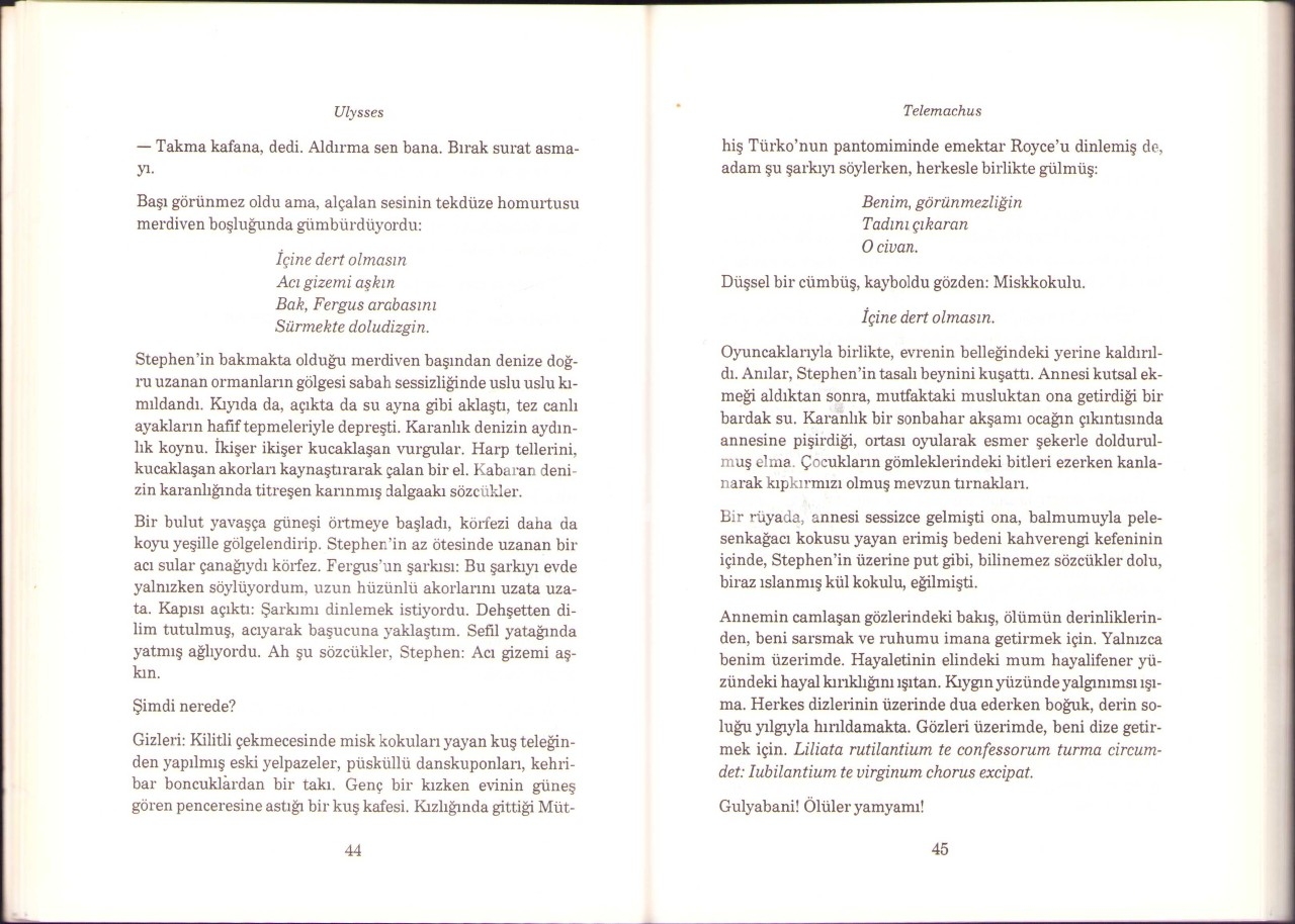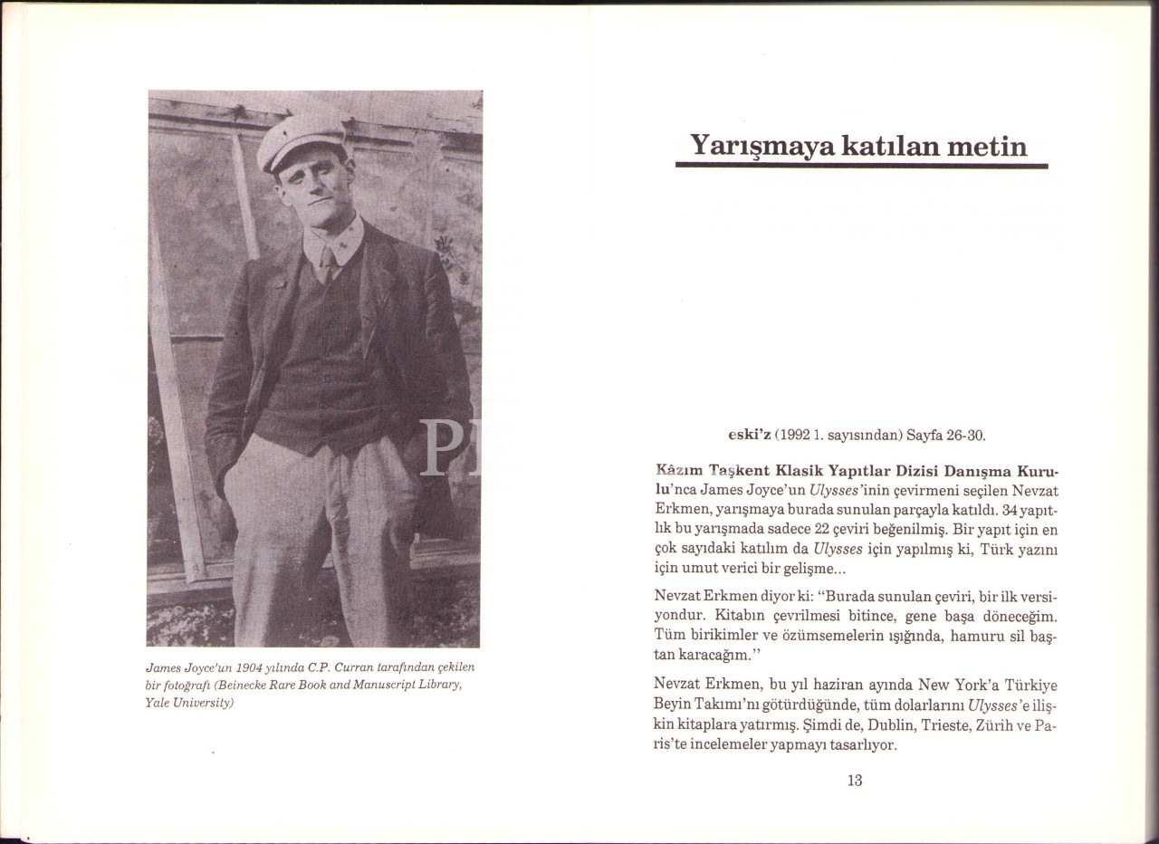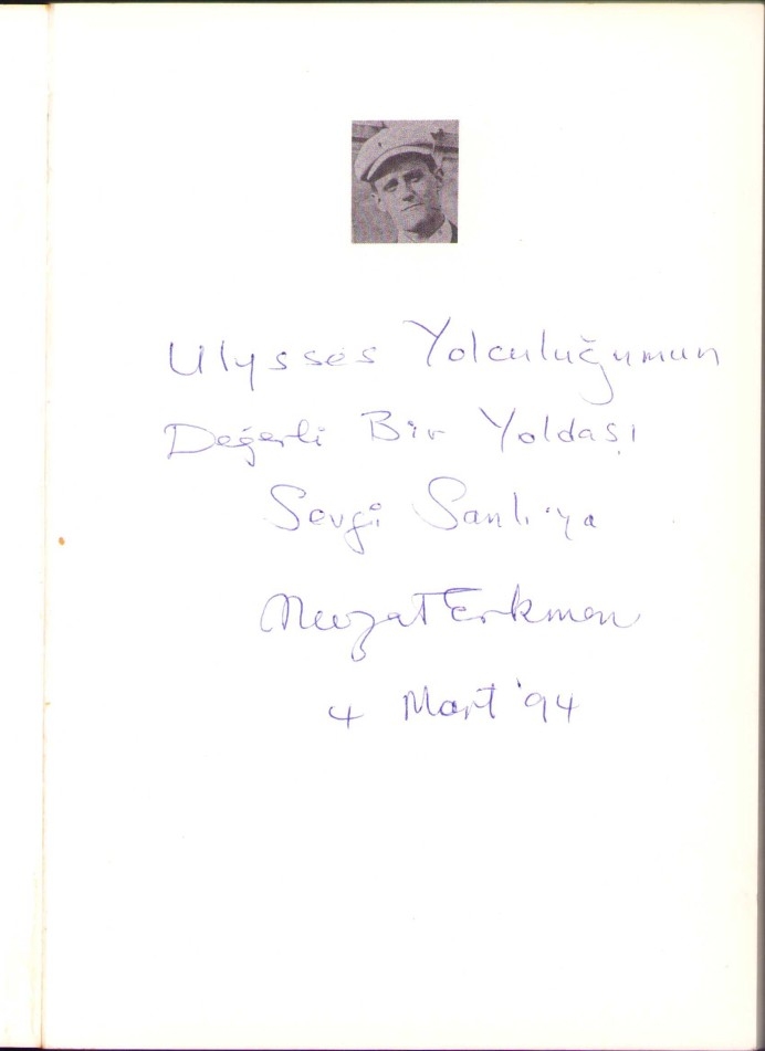 Ulysses, James Joyce, çev. Nevzat Erkmen, çevirmeninden ithaflı, Söz Yayın, İstanbul 1994, 148 s., 13x19 cm