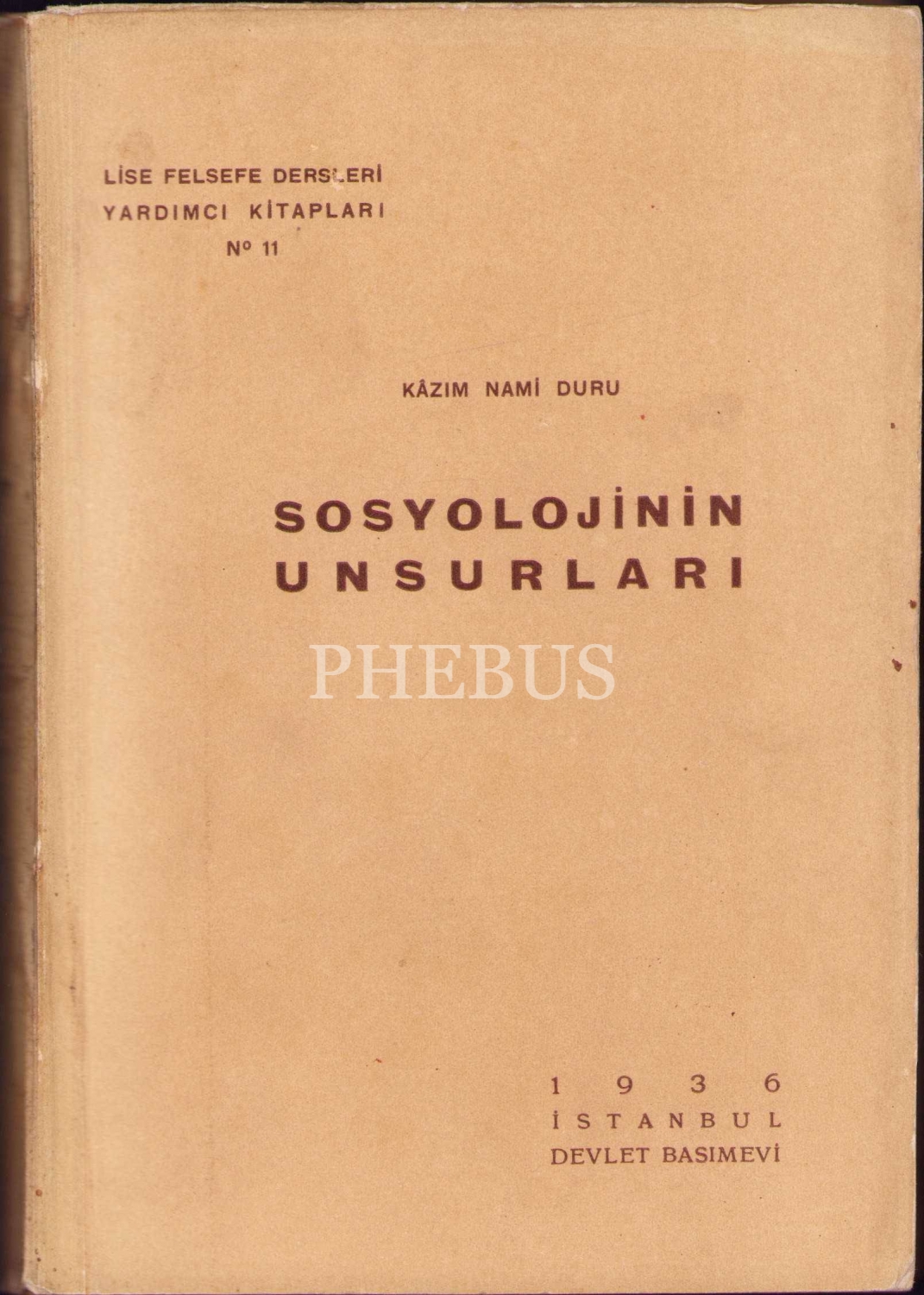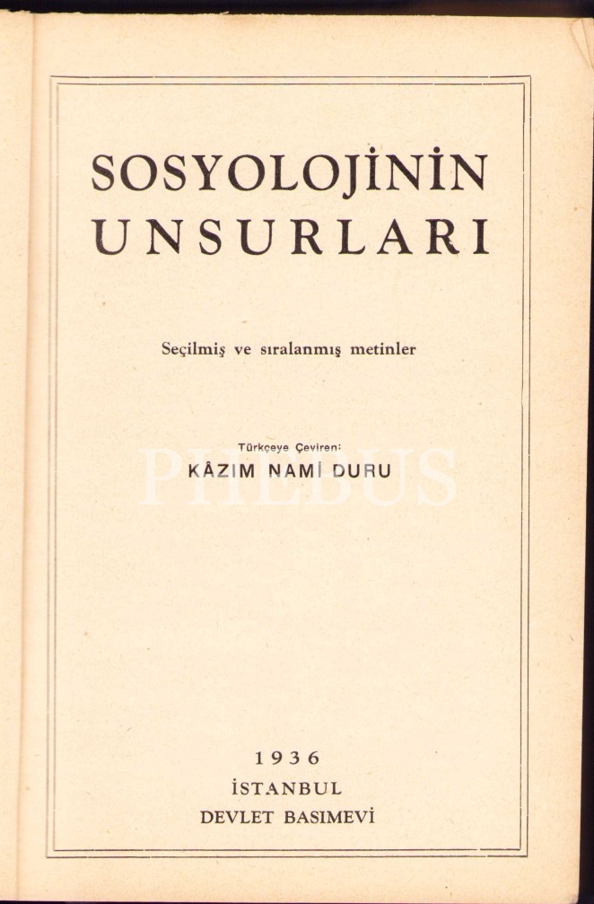 Sosyolojinin Unsurları, Kâzım Nami Duru, Devlet Basımevi, İstanbul 1936, 564 s., 13x19 cm