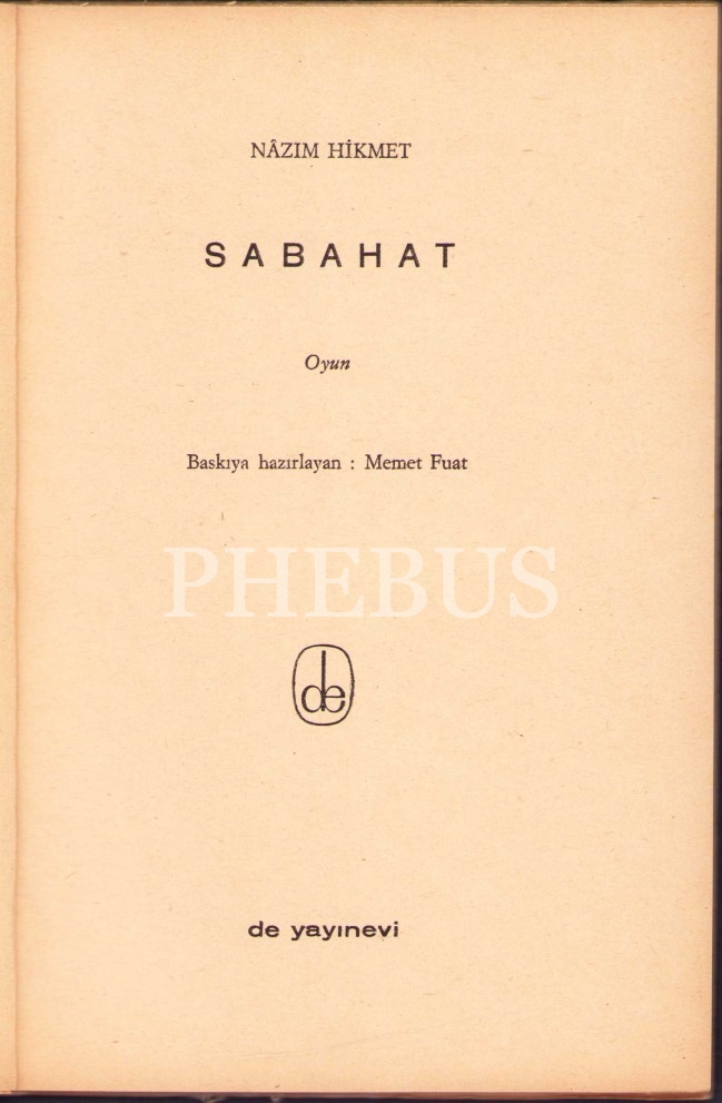 Sabahat [Oyun], Nâzım Hikmet, De Yayınevi, 1966, 100 s., 14x19 cm, kapak yorgun haliyle