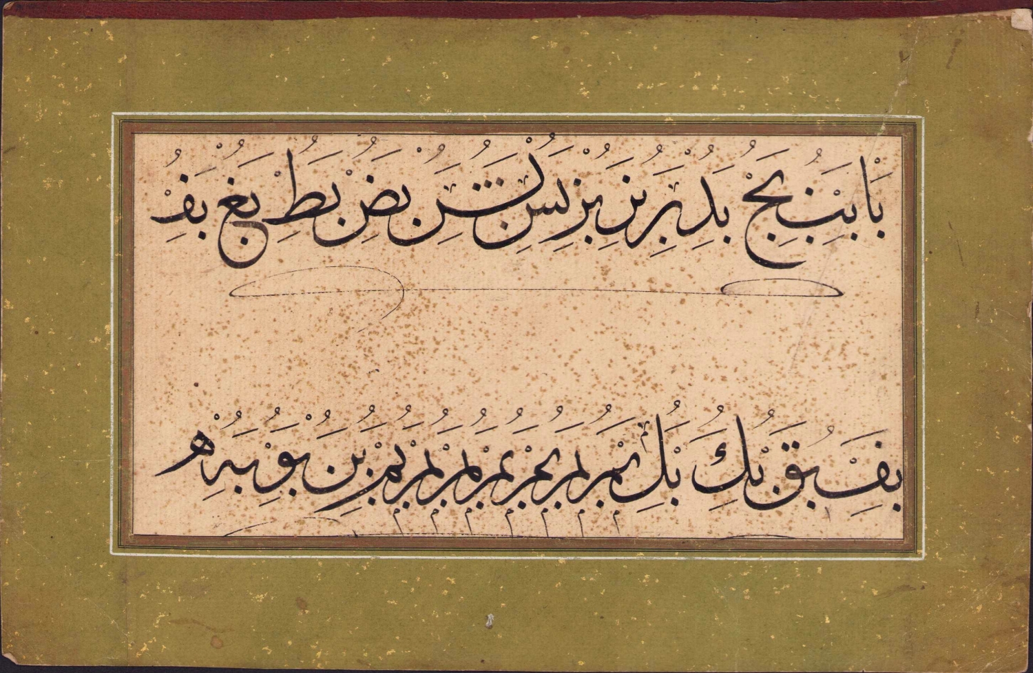 Hoca işi sülüs hurufat meşki, arkasında Hattat İbrahim Namık Efendi yazılı, 24x16cm
