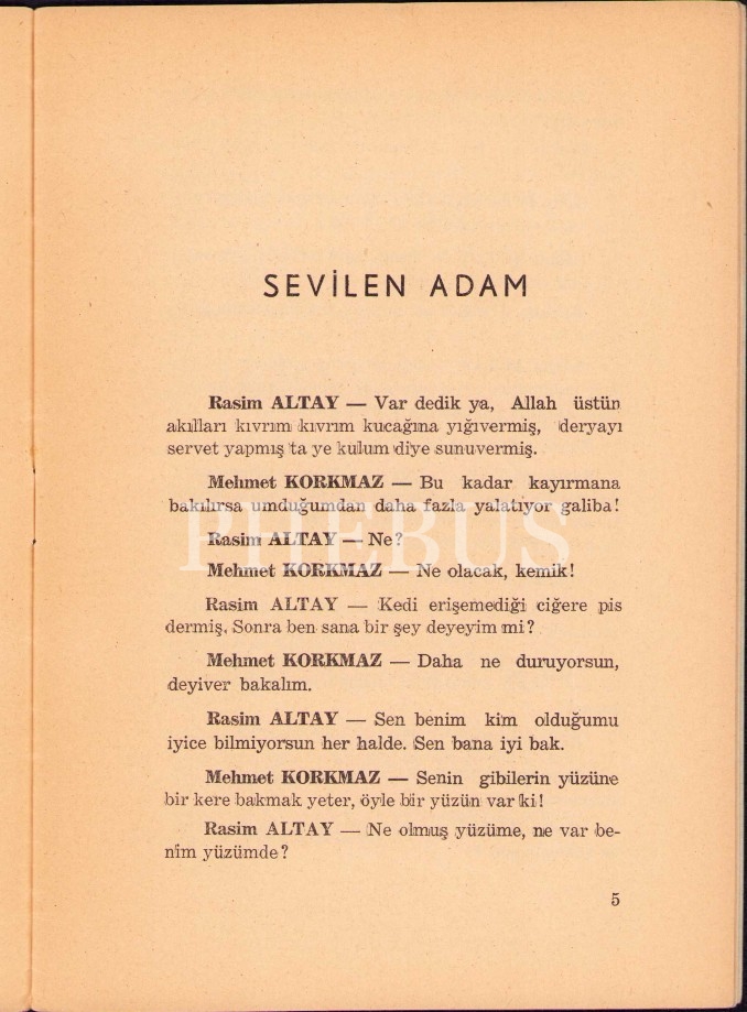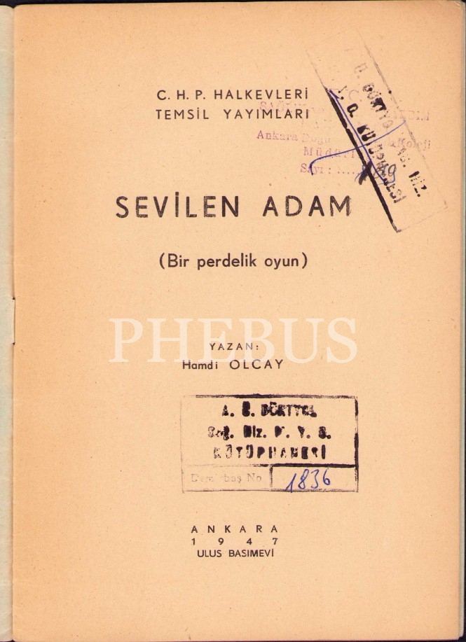 Sevilen Adam [Oyun], Hamdi Olcay, CHP Halkevleri Temsil Yayımları, Ankara 1947, 20 s., 14x20 cm, kapağı yorgun haliyle