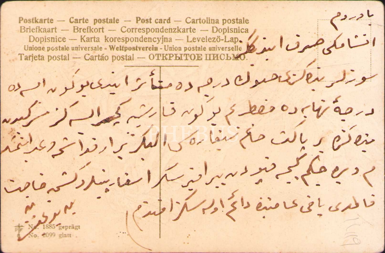 Kabartmalı kartpostal arkasında Osmanlıca mektup ve zarfı