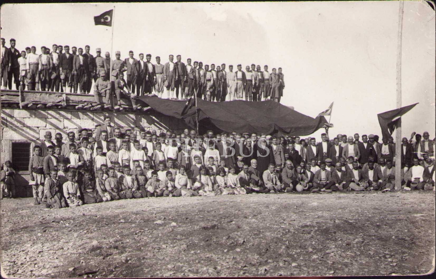 Millî bayram kutlamasından topluluk hatıra fotoğrafı, uçları yıpranmış haliyle