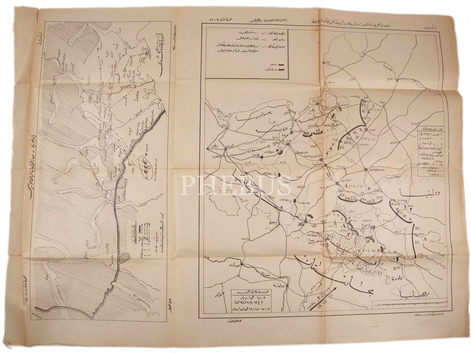 Osmanlıca harita ve kroki, İstanbul Askerî Matbaası 1341, 50x64 cm, yorgun haliyle