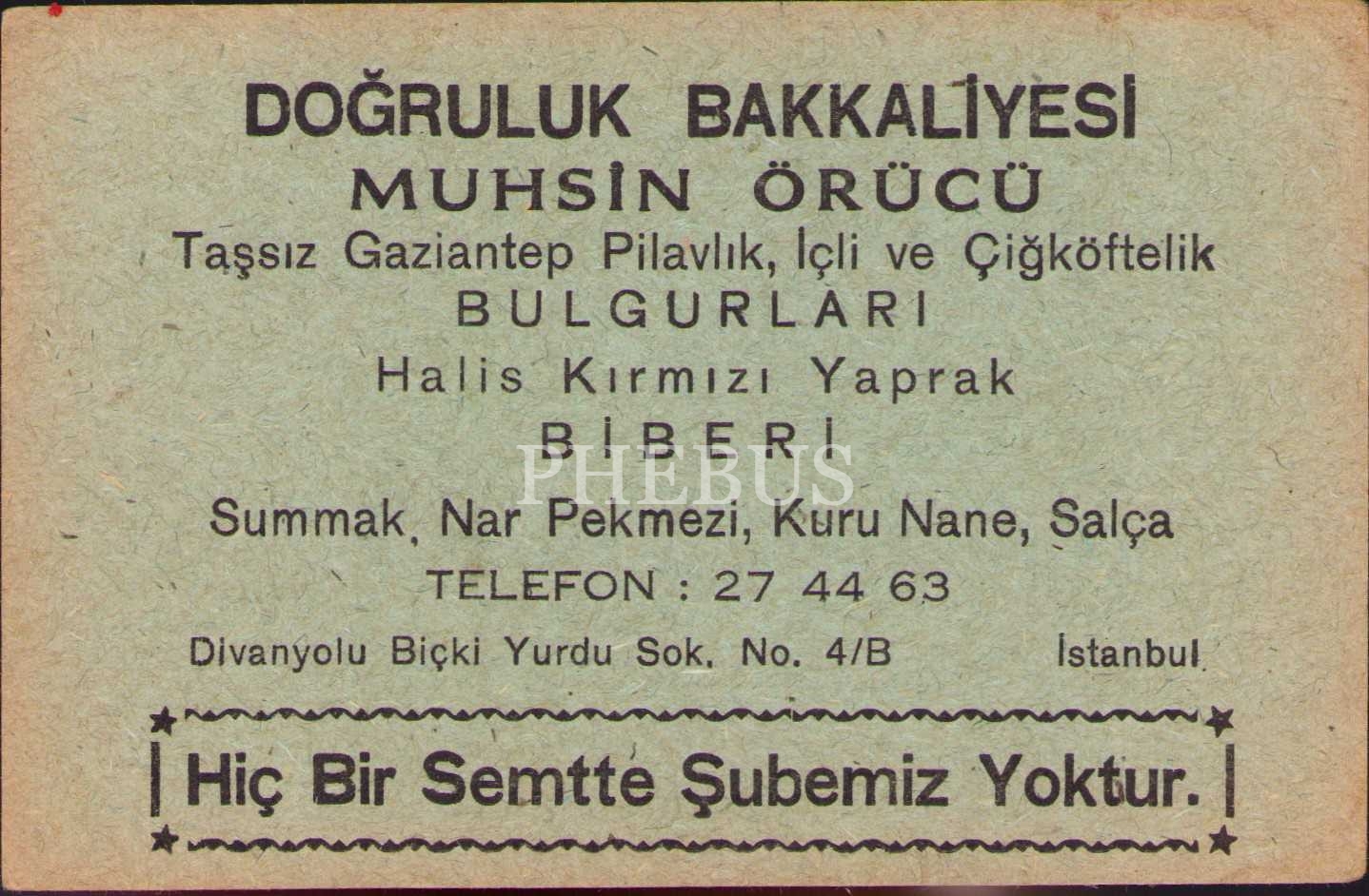 Doğruluk Bakkaliyesi reklam kartı, 8x12 cm