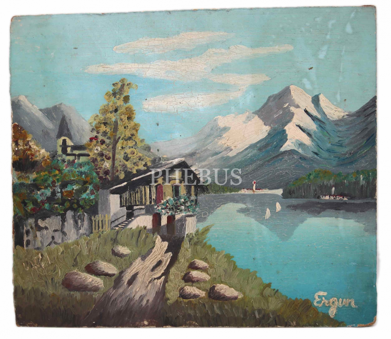 Duralit üzeri yağlıboya, Ergun imzalı, 28x31 cm