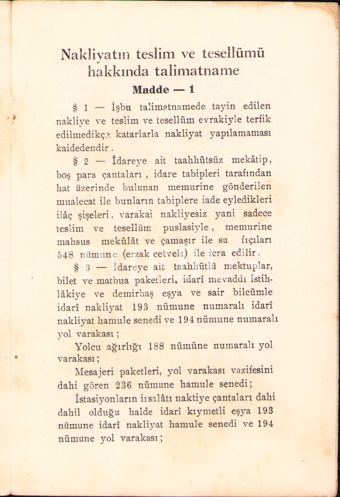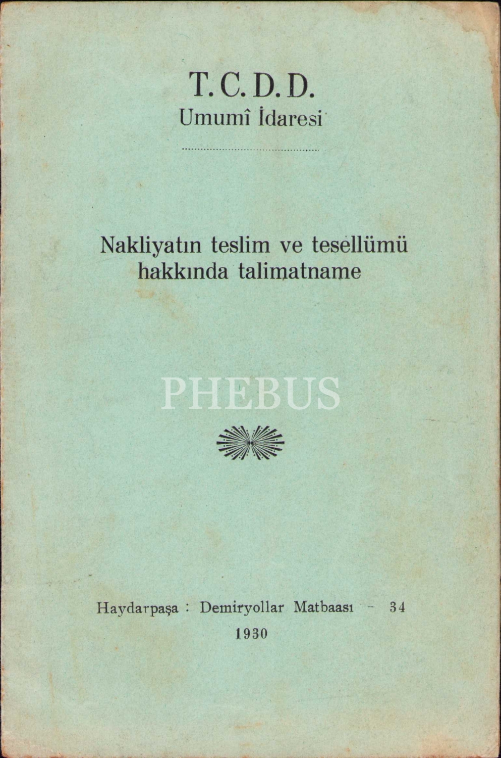 T.C.D.D. Umumî İdaresi yayınlarından nakliyat talimatnamesi, 1930, 9 sayfa, 13x19 cm