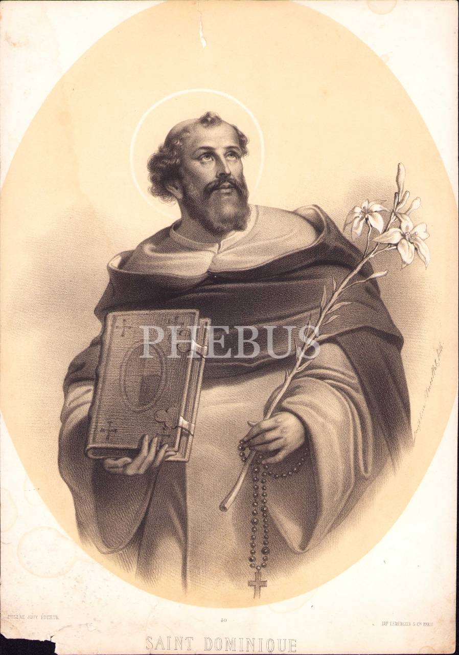 Saint Dominique gravürü, ed. Eugene Jouy, 24x34 cm, kenarları yırtık haliyle