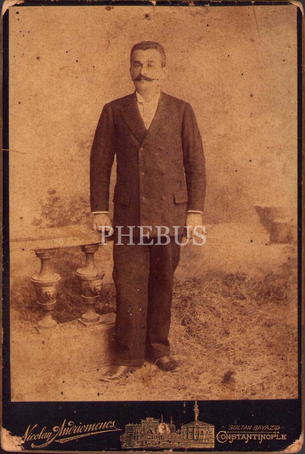 Şahıs hatıra fotoğrafı, Nicolay Andriomenos Fotoğrafhanesi, Constantinople, 11x16 cm, köşeleri soyulmuş haliyle