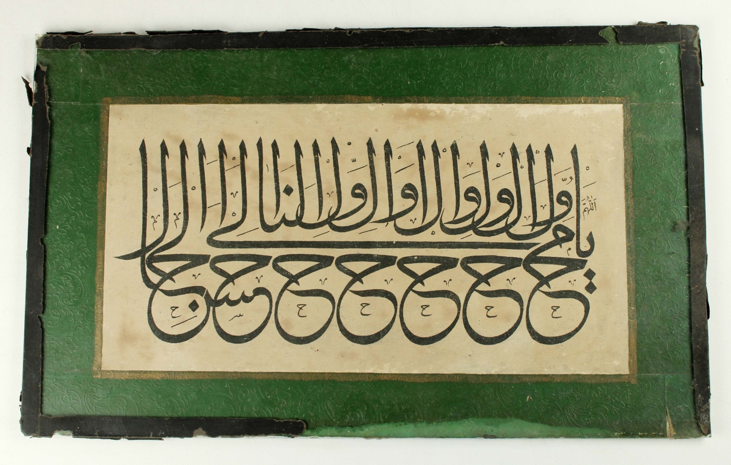 Baskı hat levha, arkasında Osmanlıca 'Hacı Bayram Cami İmamı Konyalı Zekai Sarsılmaz 1966' yazılı, 33x20cm