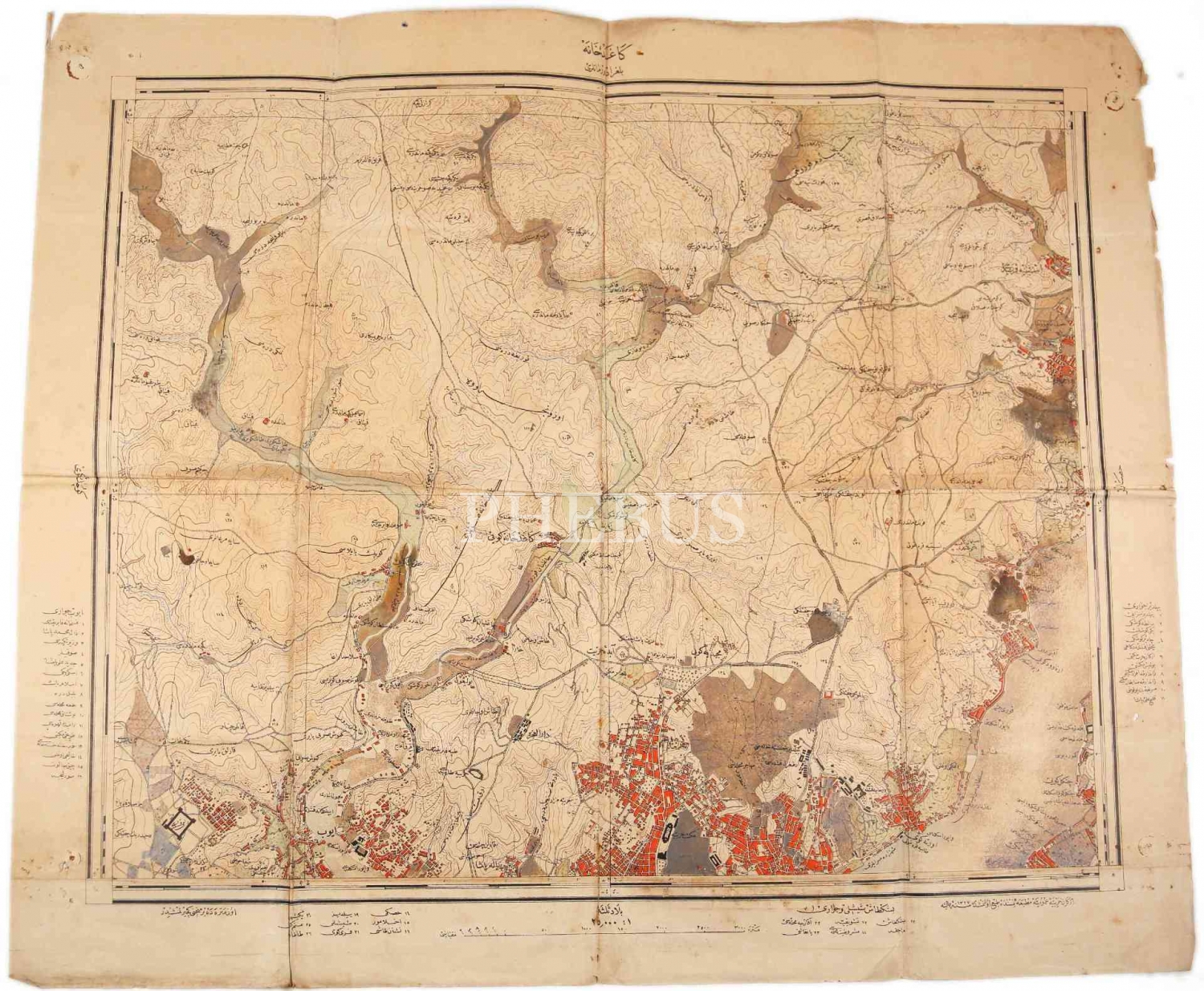 Osmanlıca Kağıthane haritası, Erkan-ı Harbiye-i Umumiye Matbaası, 1327, 49x58 cm, epey yıpranmış haliyle