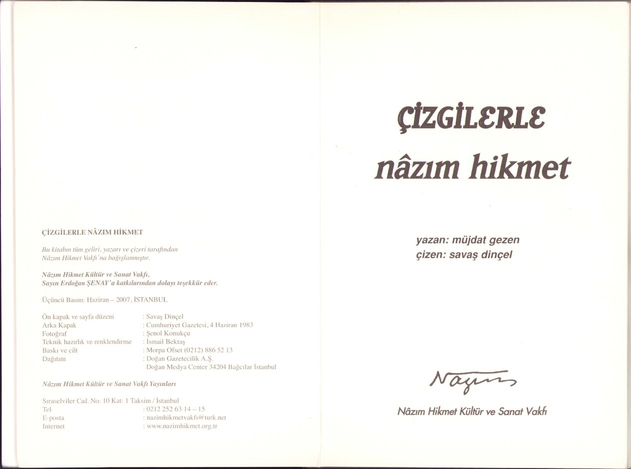Çizgilerle Nâzım Hikmet, Müjdat Gezen, çizen: Savaş Dinçel, Nâzım Hikmet Kültür ve Sanat Vakfı, İstanbul 2007, 16x23 cm