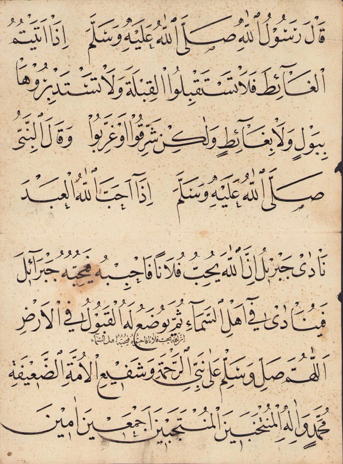 Nesih hat, abdest ile alakalı Hadis-i Şerif ve Salavat-ı Şerif yazılı, 20x26cm