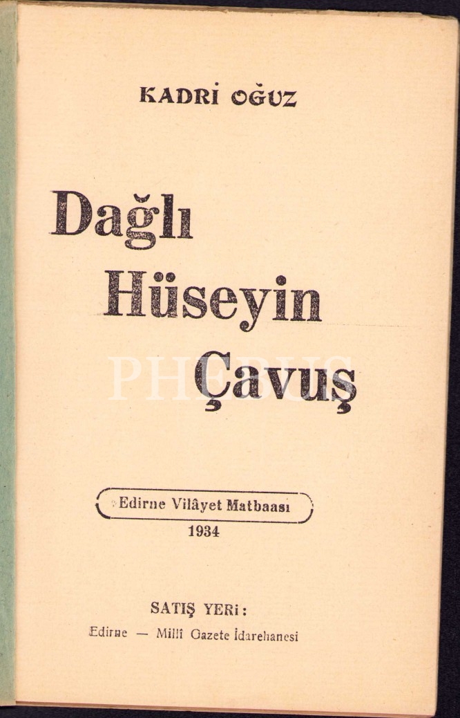 Dağlı Hüseyin Çavuş, Kadri Oğuz, Edirne Vilâyet Matbaası, 1934, 19 s., 14x20 cm