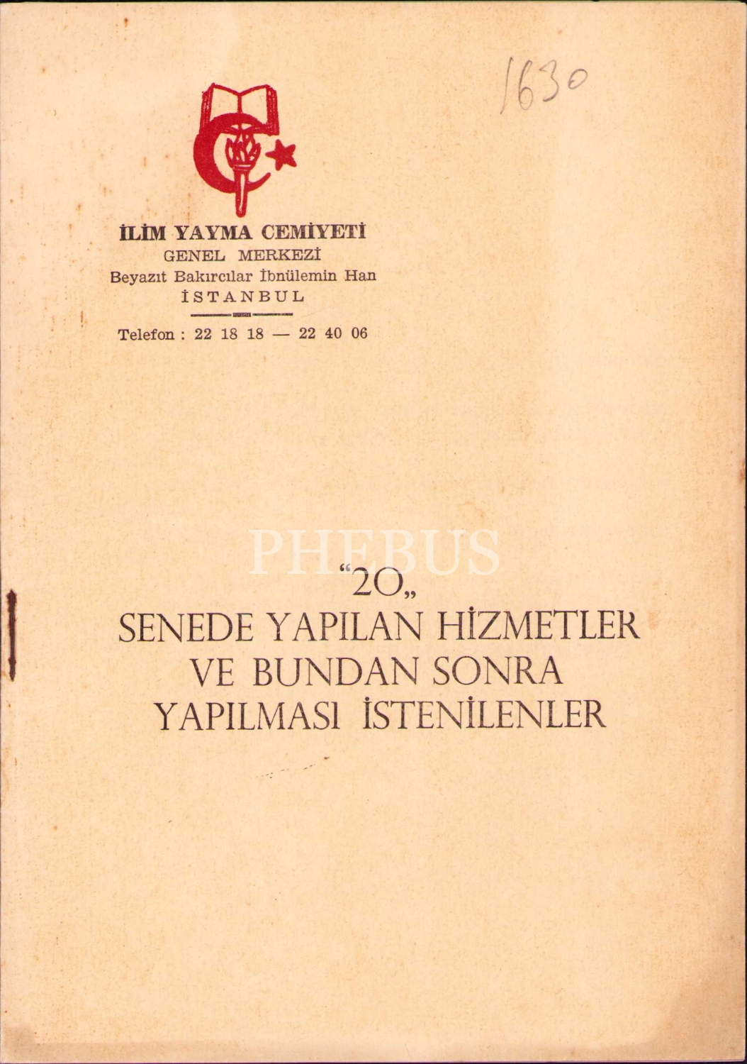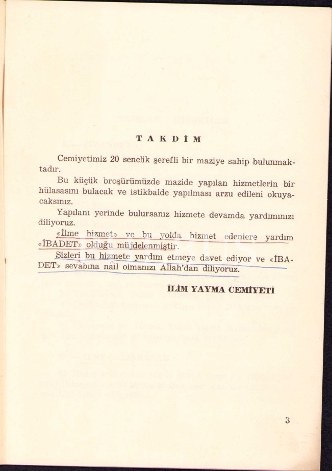 İlim Yayma Cemiyeti'nin hizmet broşürü, 29 sayfa, 14x19 cm