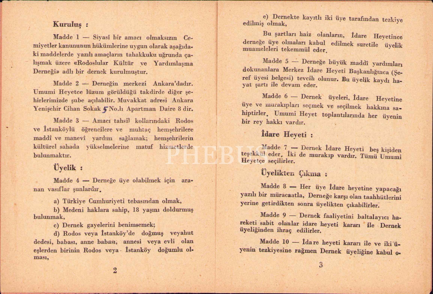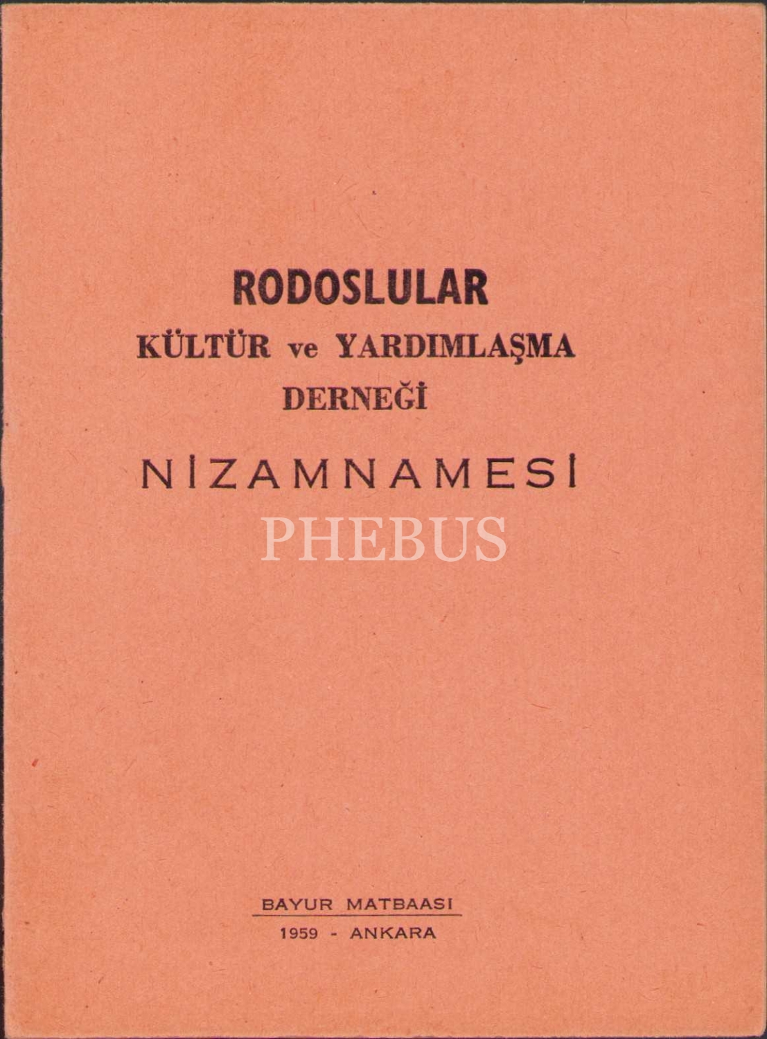 Rodoslular Kült. Ve Yard. Dern. Nizamnamesi, Ankara 1959, 8 sayfa, 10x13 cm